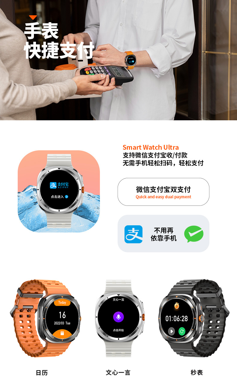 W8 Huaqiang North Smart Watch Ultra Dual Pay Deportivo Bluetooth Llamada Tecnología Negra Multifuncional