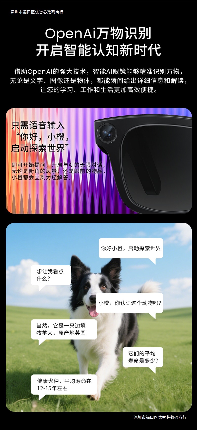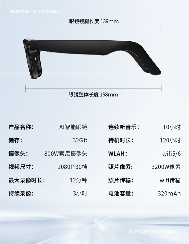 Transfronterizos E02 gafas inteligentes (HeyCyan) fotos y video 800W píxeles Ai voz ChatGPT al por mayor