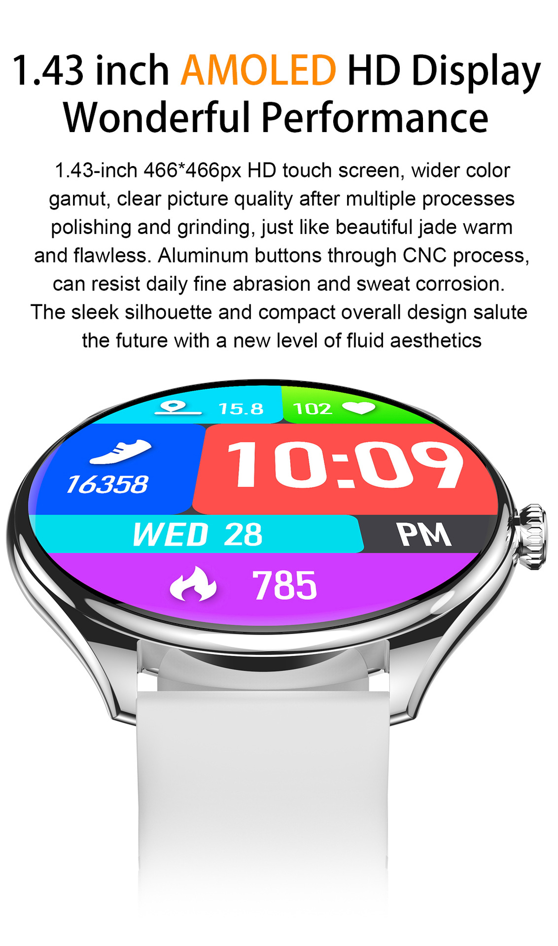 MT55 reloj inteligente 1.43oled pantalla redonda salud presión arterial monitoreo de la frecuencia cardíaca deportes multifunción alto valor facial