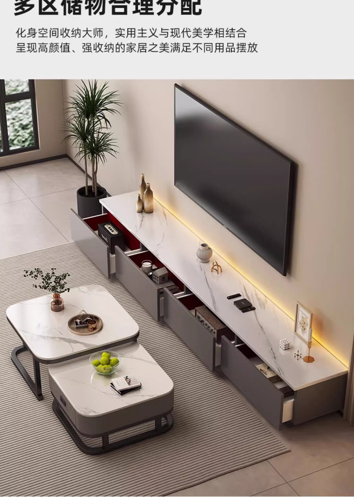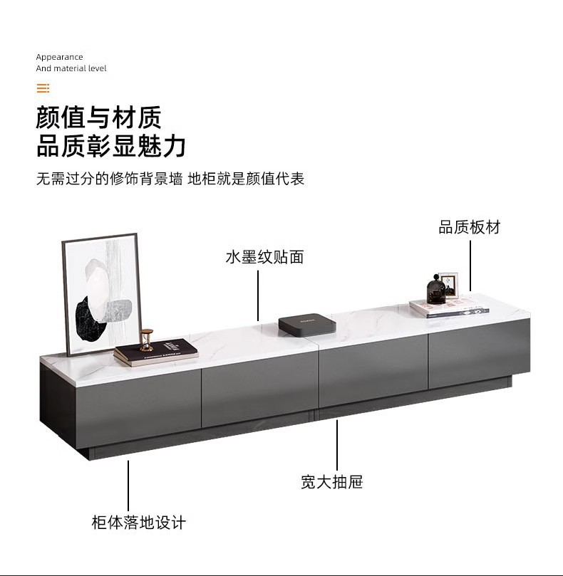 Gabinete de televisión sala de estar doméstica pequeña casa 2025 nuevo almacenamiento en el suelo en un gabinete de televisión moderno y simple