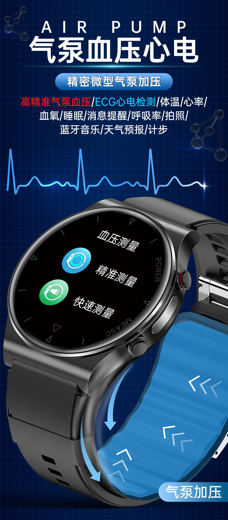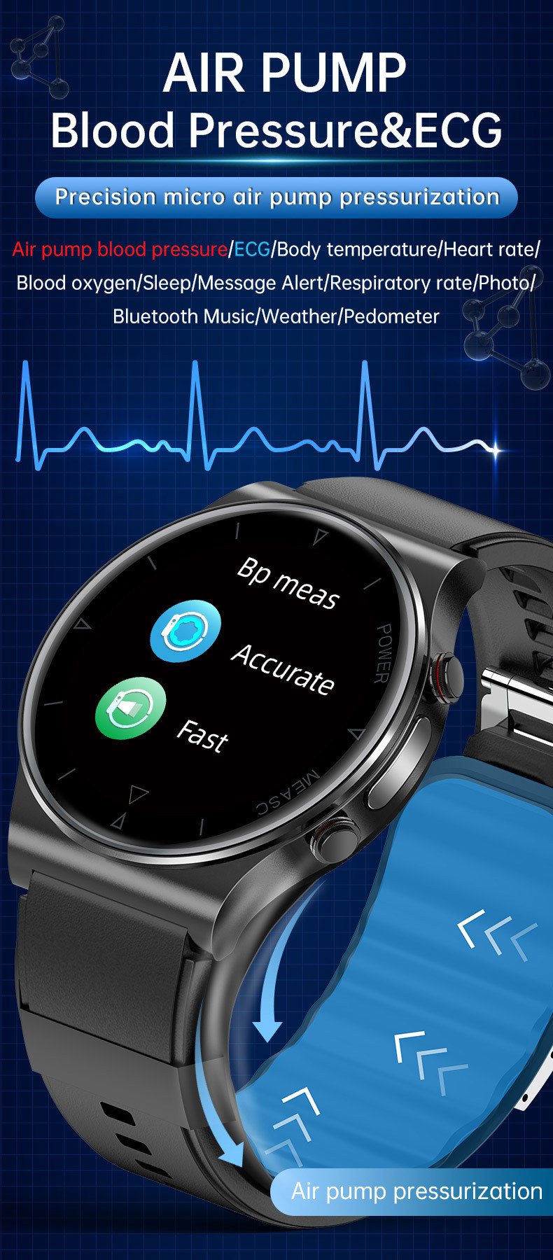 P70 reloj inteligente bomba de aire bolsa de aire presión arterial frecuencia cardíaca temperatura de oxígeno en sangre monitoreo de salud sueño reloj de movimiento contador de pasos