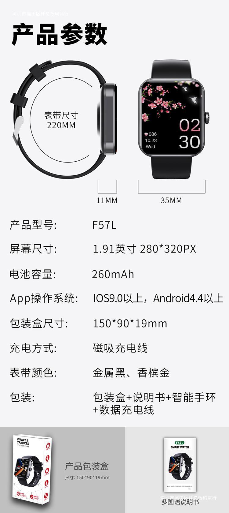 Nueva F57L reloj inteligente del ritmo cardíaco termómetro paso pulsera deportes información push monitoreo sueño