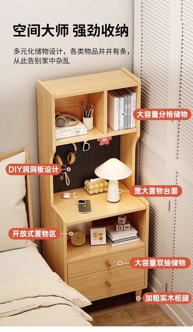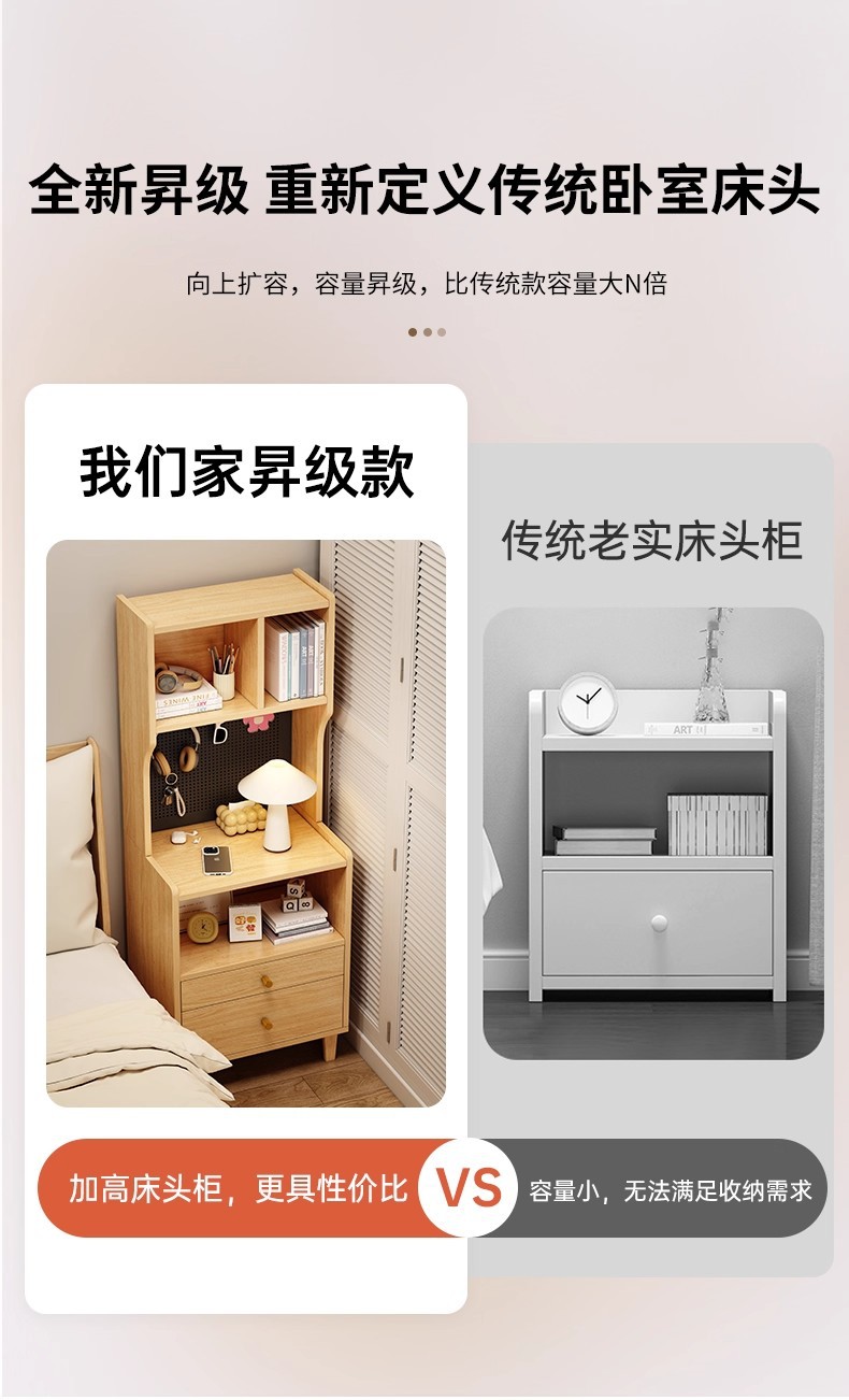 Mesa de cabecera de cama alta estante de cabecera de cama lujo ligero de alta sensación de gabinete de cabecera de dormitorio doméstico 2025 nuevo gabinete de almacenamiento