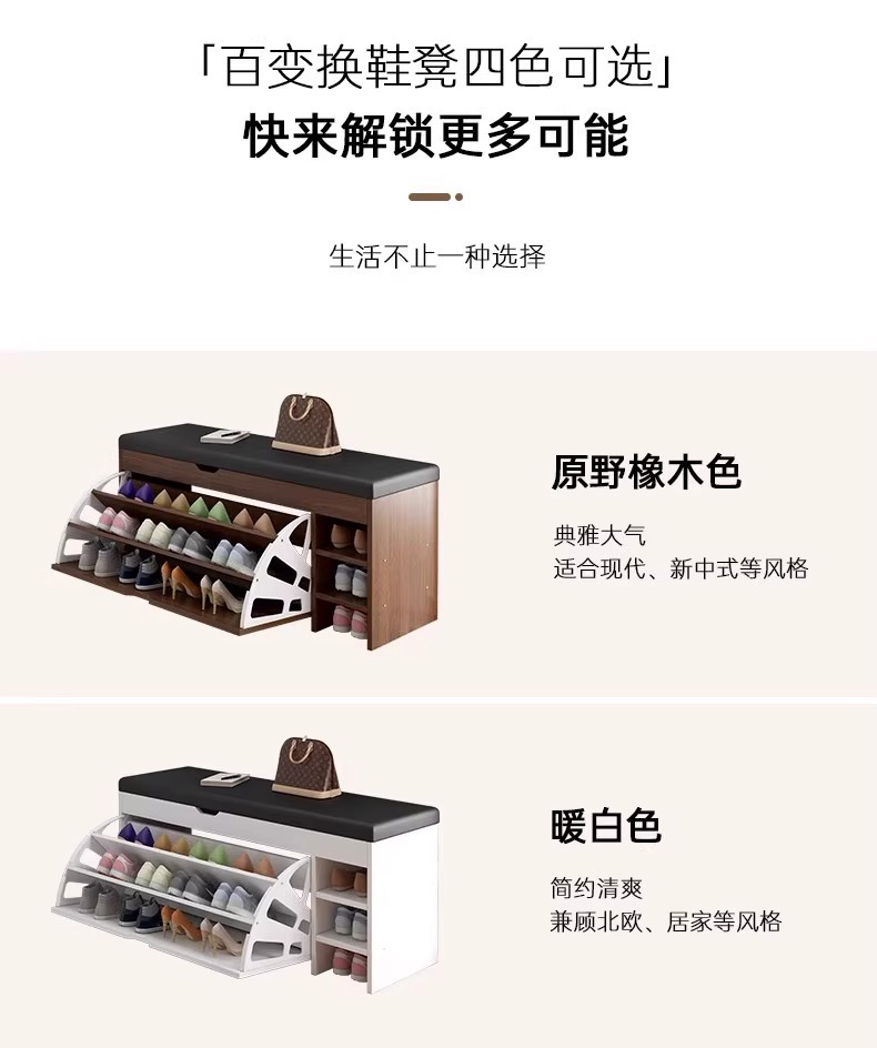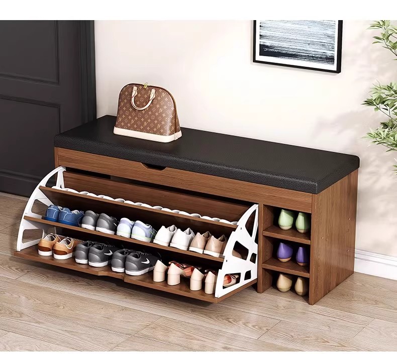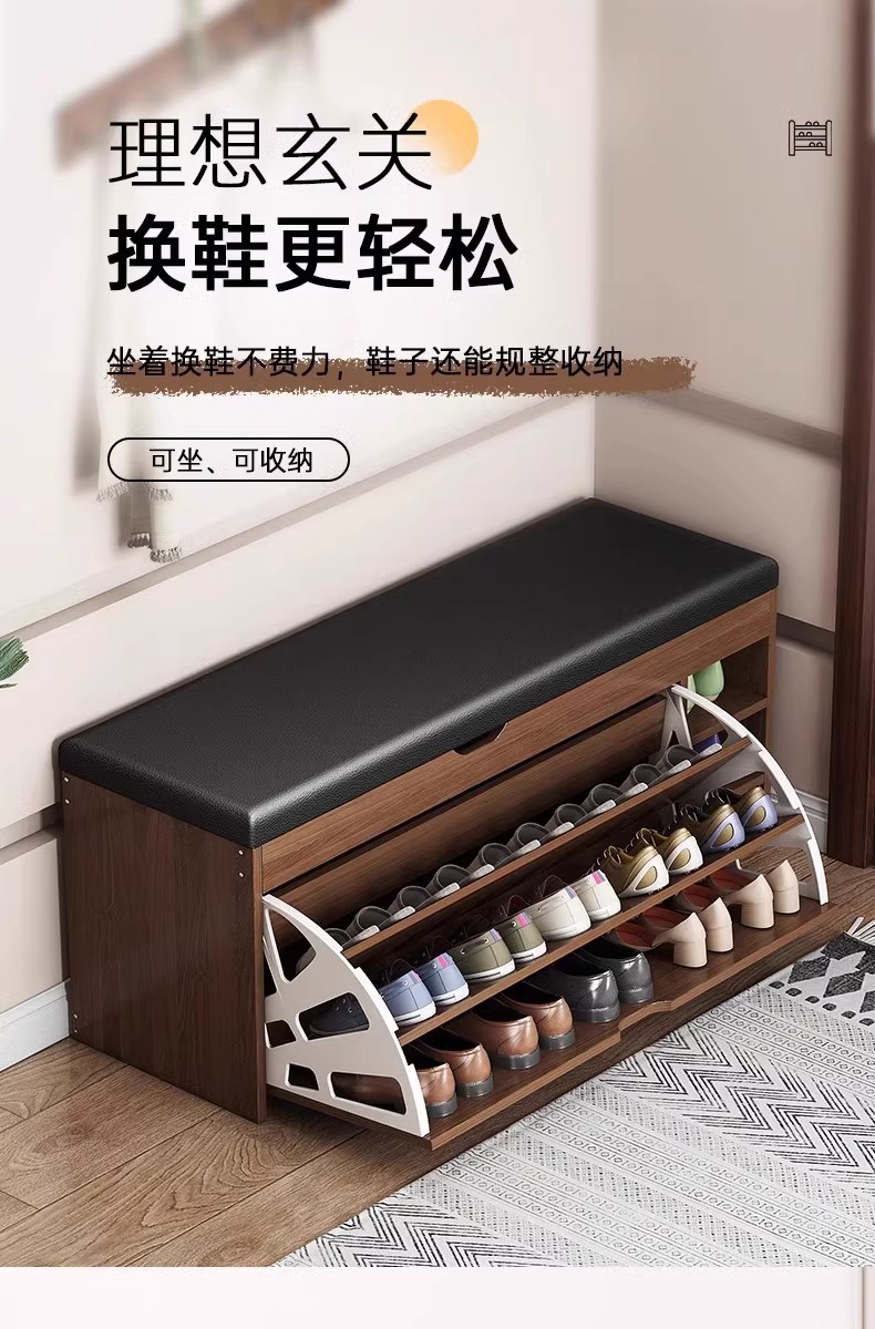 Taburete de cambio de zapatos en la puerta del hogar, taburete de asiento para armario de zapatos, taburete de asiento integrado, estante de zapatos de flip-top, almacenamiento de entrada, taburete de zapatos