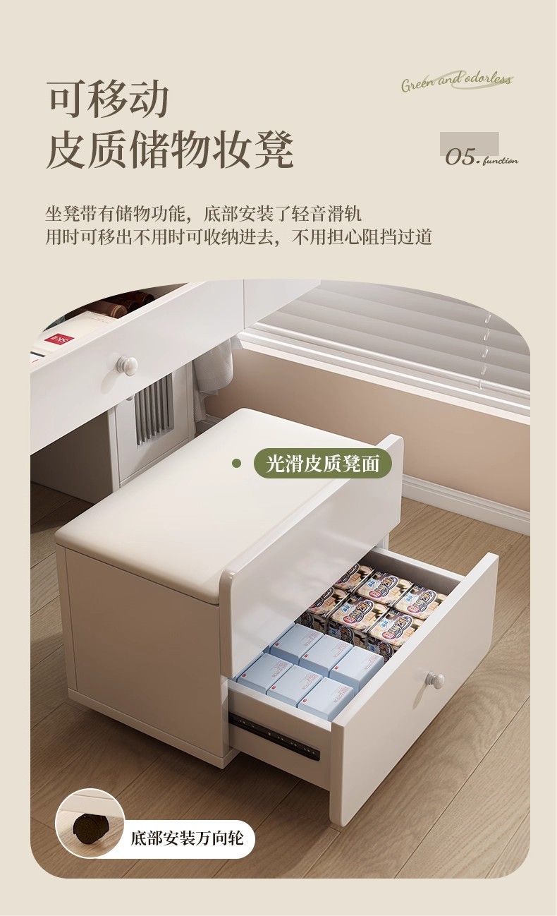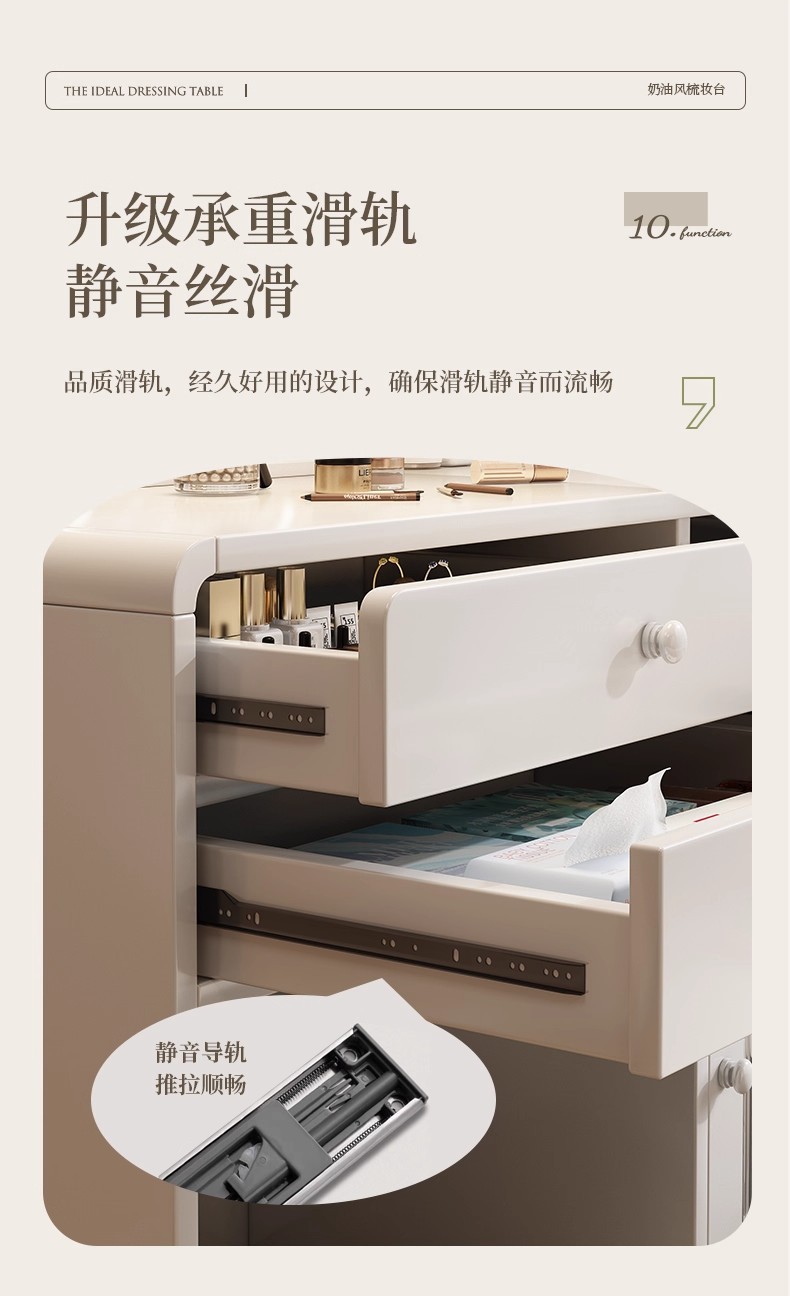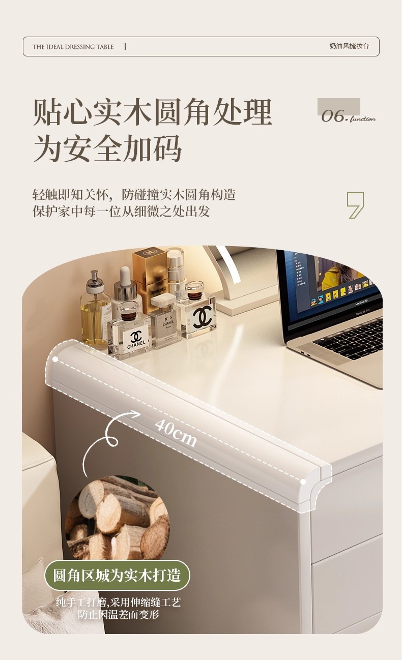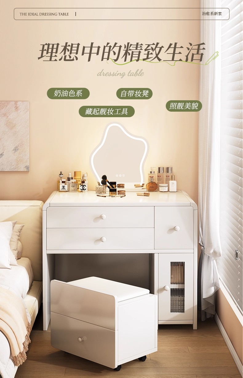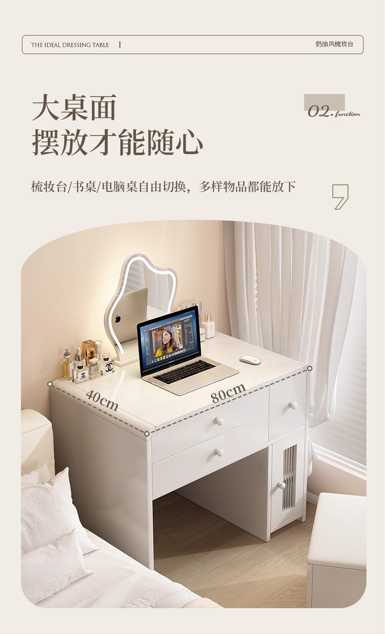 Mesa de maquillaje, mesas de cabezal de cama en un dormitorio, camerino de estilo de crema para niñas de almacenamiento simple, pequeño escritorio, pequeño camerino