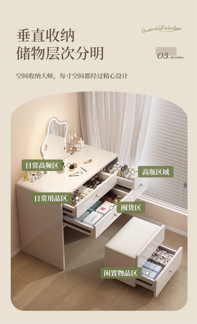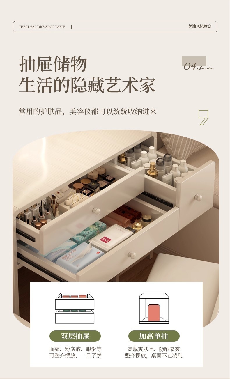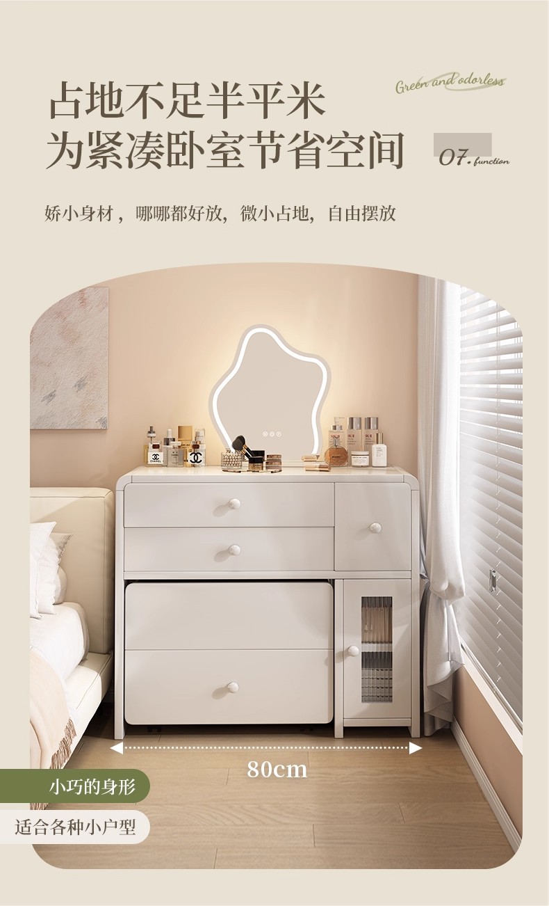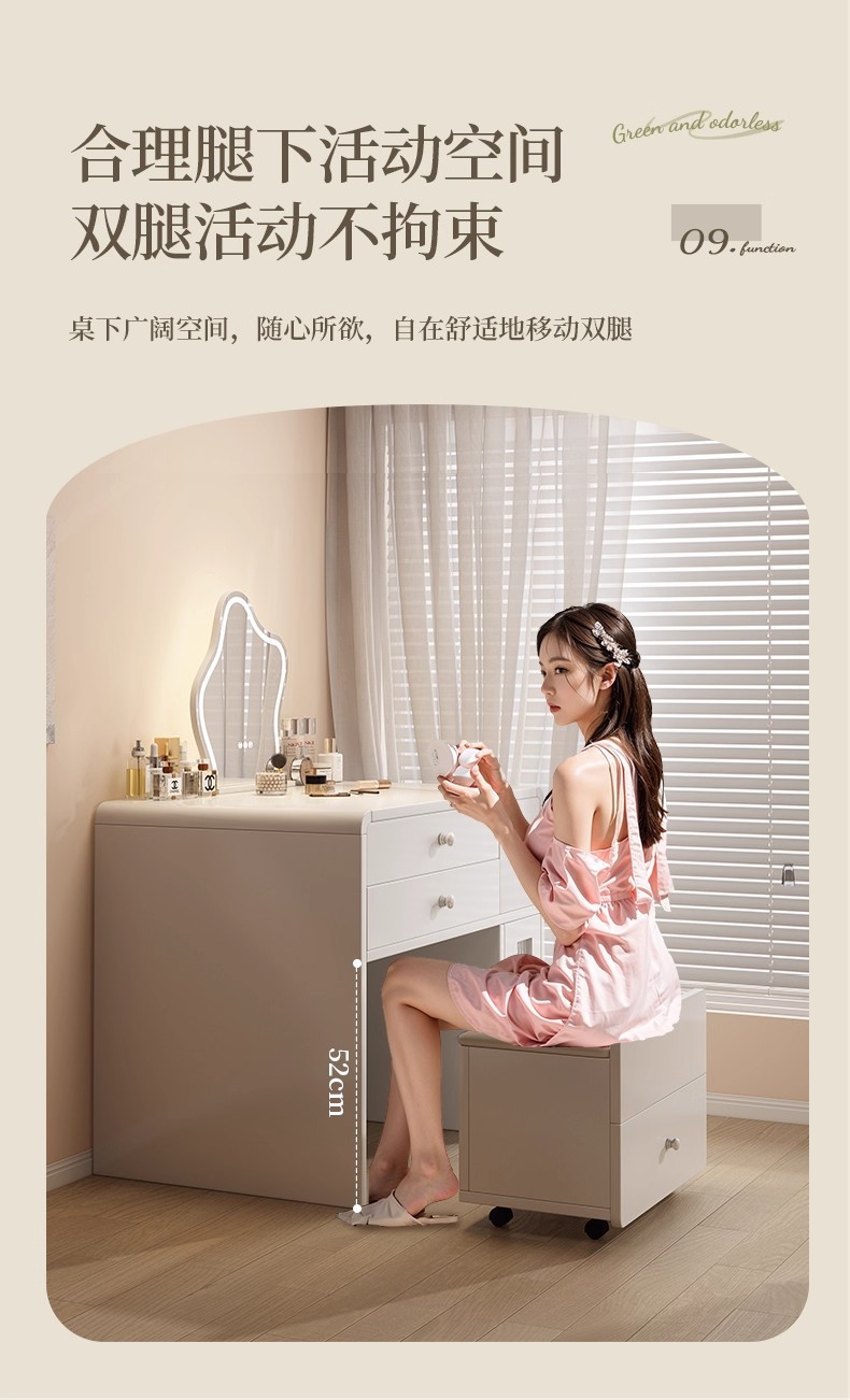 Mesa de maquillaje, mesas de cabezal de cama en un dormitorio, camerino de estilo de crema para niñas de almacenamiento simple, pequeño escritorio, pequeño camerino