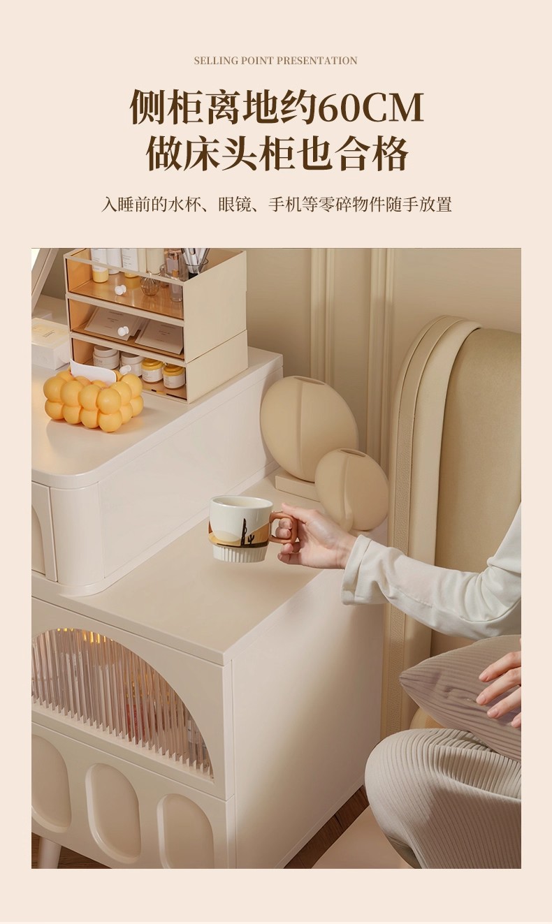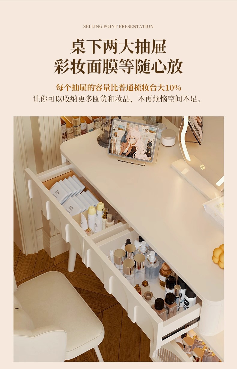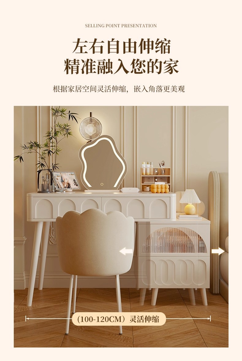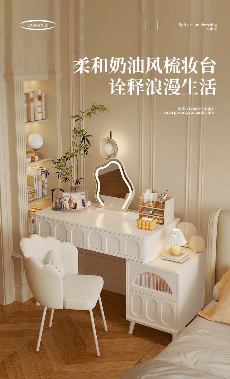 Comedor de estilo crema dormitorio simple moderno 2025 nuevo pequeño escritorio de esquina armario de maquillaje espejo de mesa