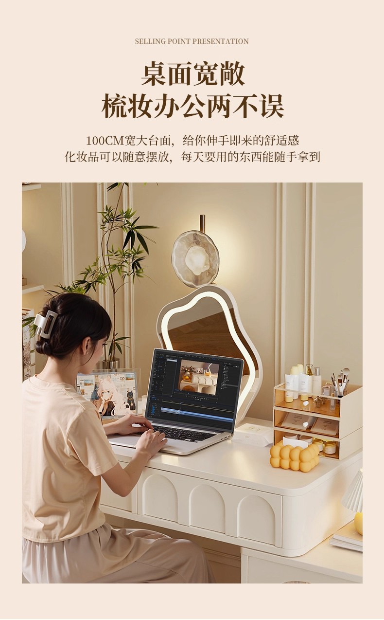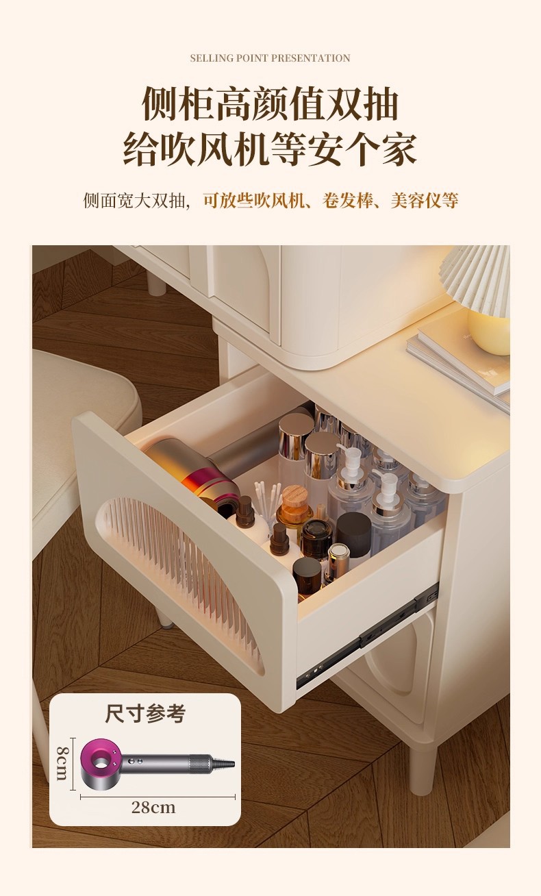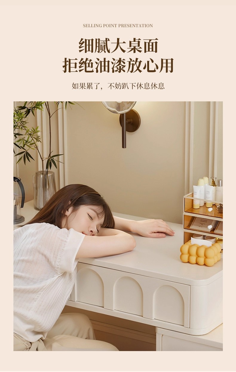 Comedor de estilo crema dormitorio simple moderno 2025 nuevo pequeño escritorio de esquina armario de maquillaje espejo de mesa