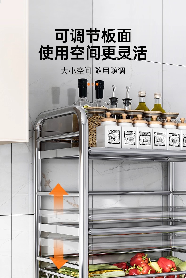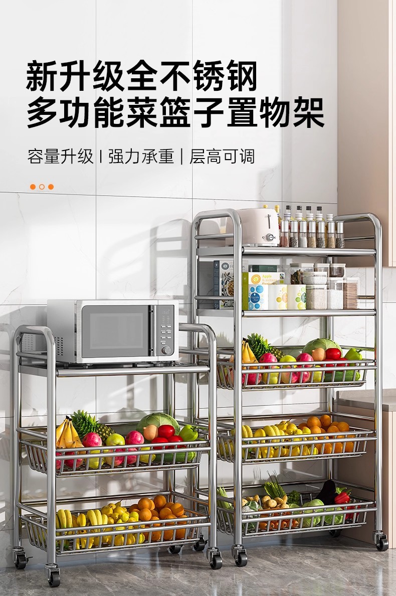 Estante de almacenamiento de acero inoxidable de cocina multicapa de cestas de vegetales de piso multifuncional de almacenamiento de carro pequeño estante de almacenamiento de microondas