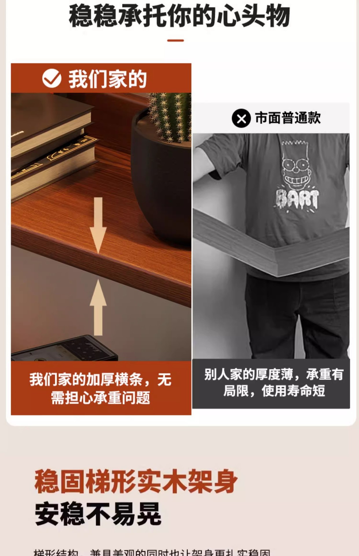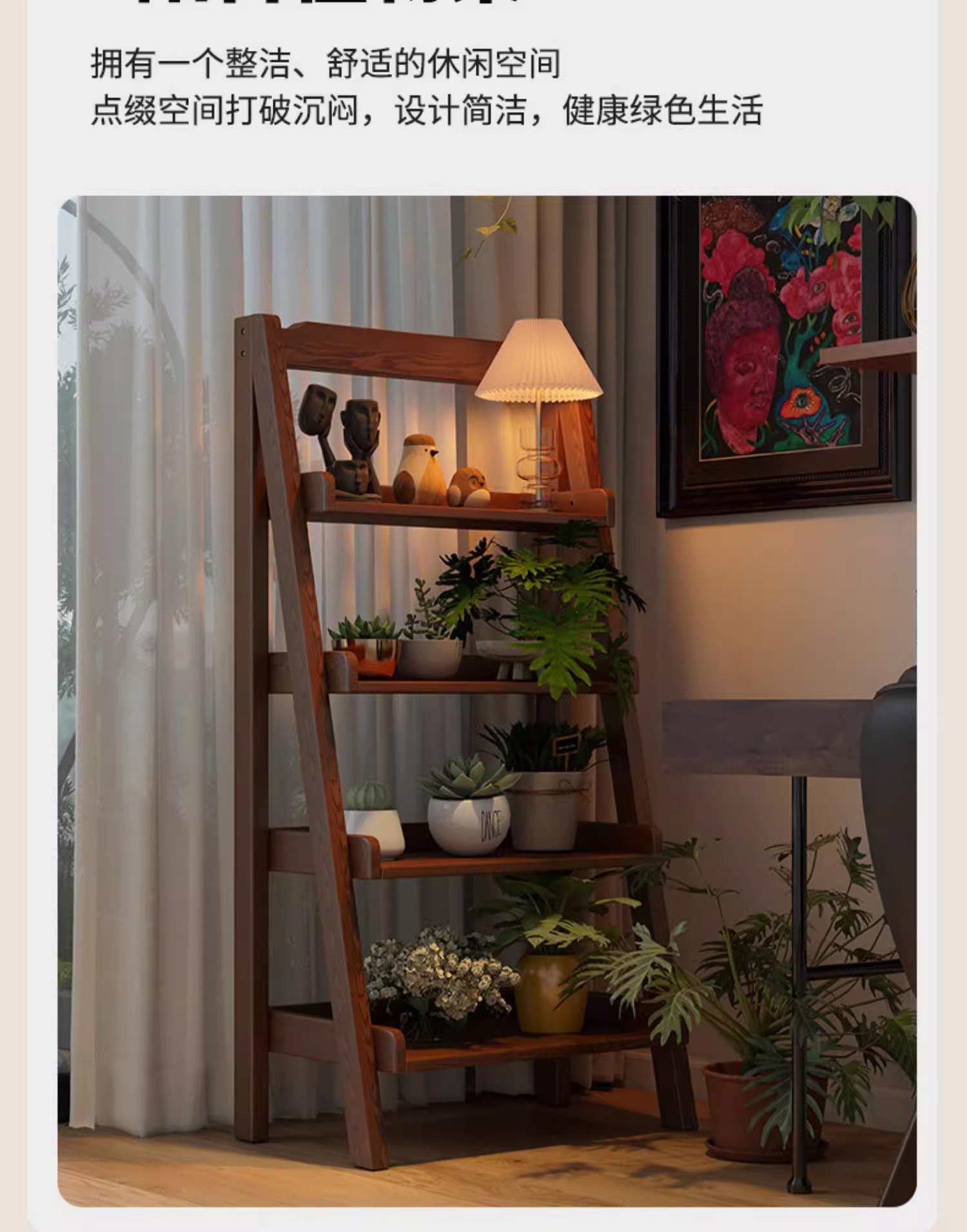 Estantes de madera sólida estantes de escaleras estantes de exhibición estantes de sala de estar estantes de bocadillos multicapa estantes de almacenamiento estantes de trapezoides simples