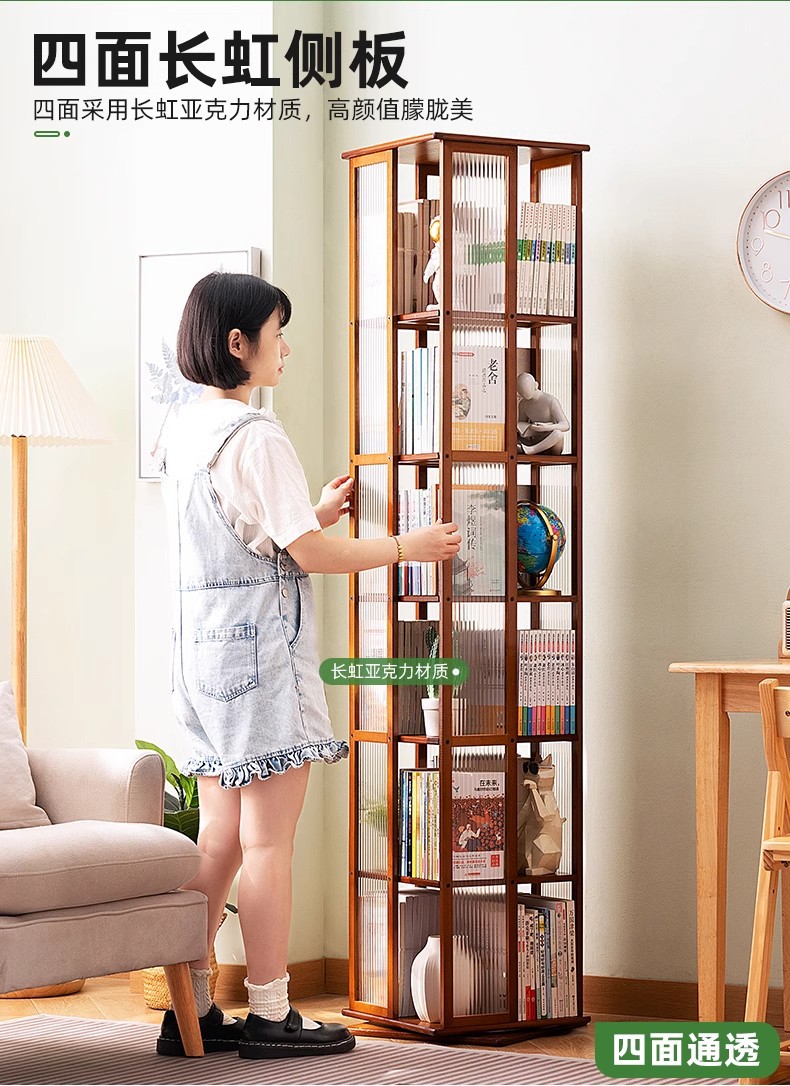 Estante giratorio de madera sólida estante de 360 grados Nan bambú estante de piso esquina creativa no vacía armario de estudiantes