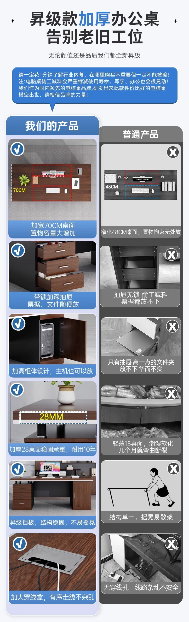 Escritorio Mesa de jefe Mesa de oficina Mesa y silla Combinación simple y moderna Mesa de personal para computadora individual y doble Mesa para el hogar