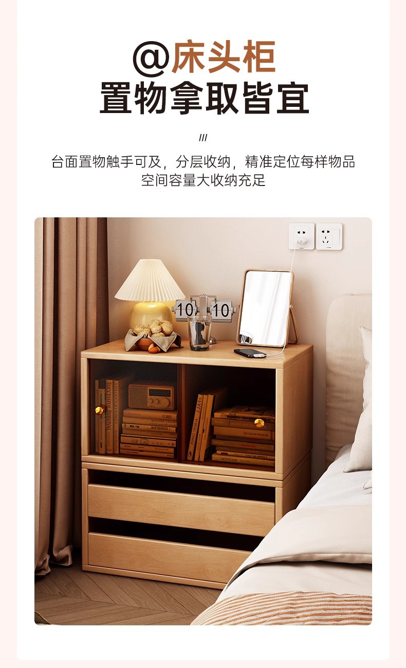 Mesa de cabecera dormitorio doméstico lujoso ligero de alta sensación armario de almacenamiento integrado contra la pared simple pequeño estante de cabecera de cama