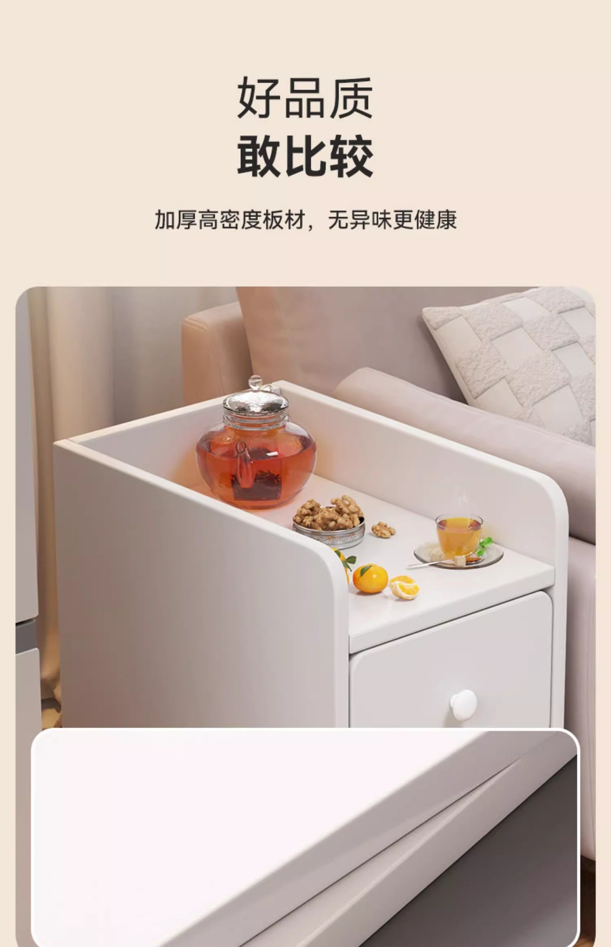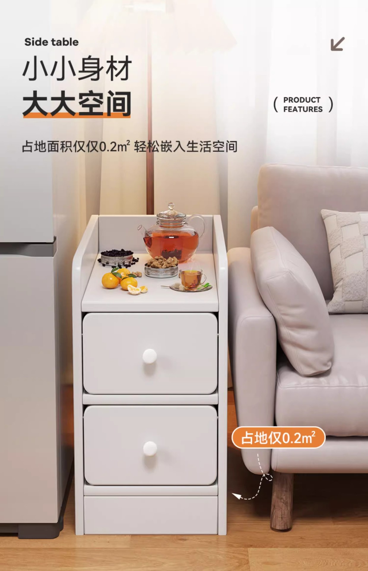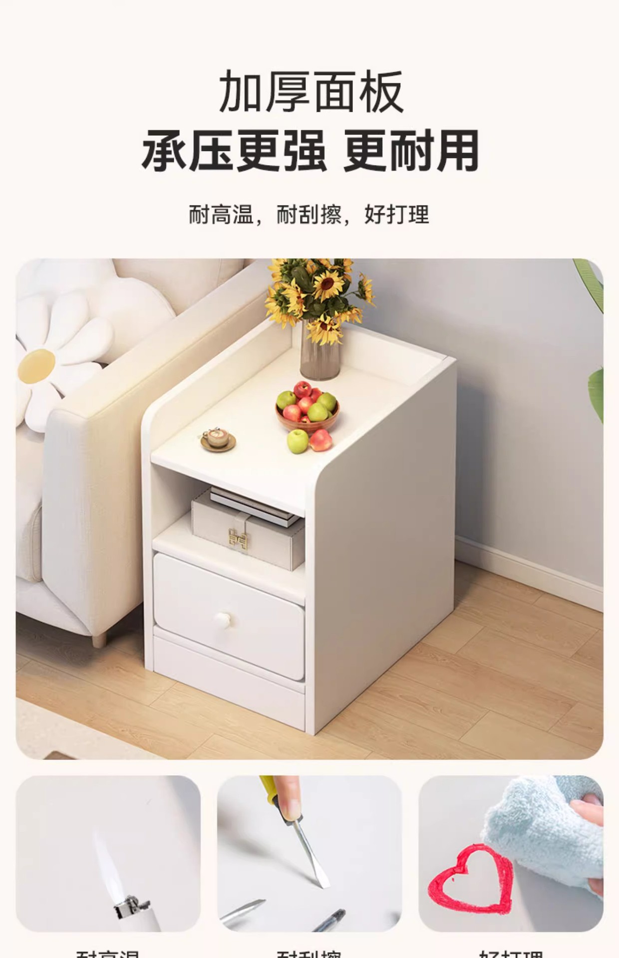 Mesita de noche, dormitorio doméstico, armario lateral de cama, estante pequeño, armario de almacenamiento simple para alquiler, armario de borde estrecho para sala de estar