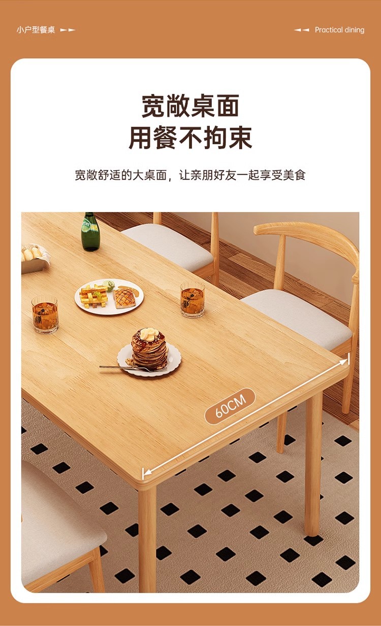 Mesa de comedor de madera sólida pequeña casa de color nuez tabla grande tabla de comedor rectangular sala de estar simple combinación de una mesa y cuatro sillas