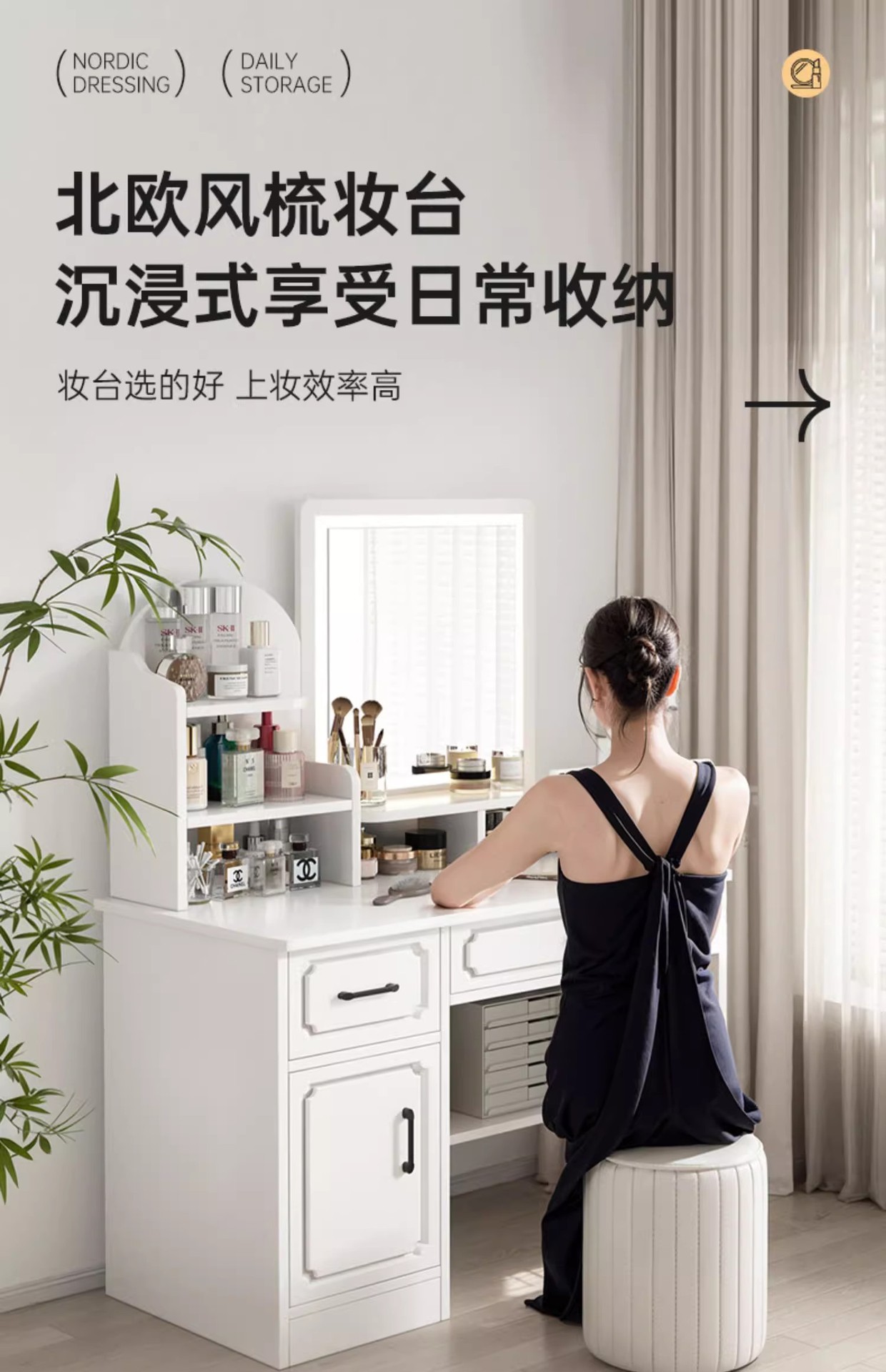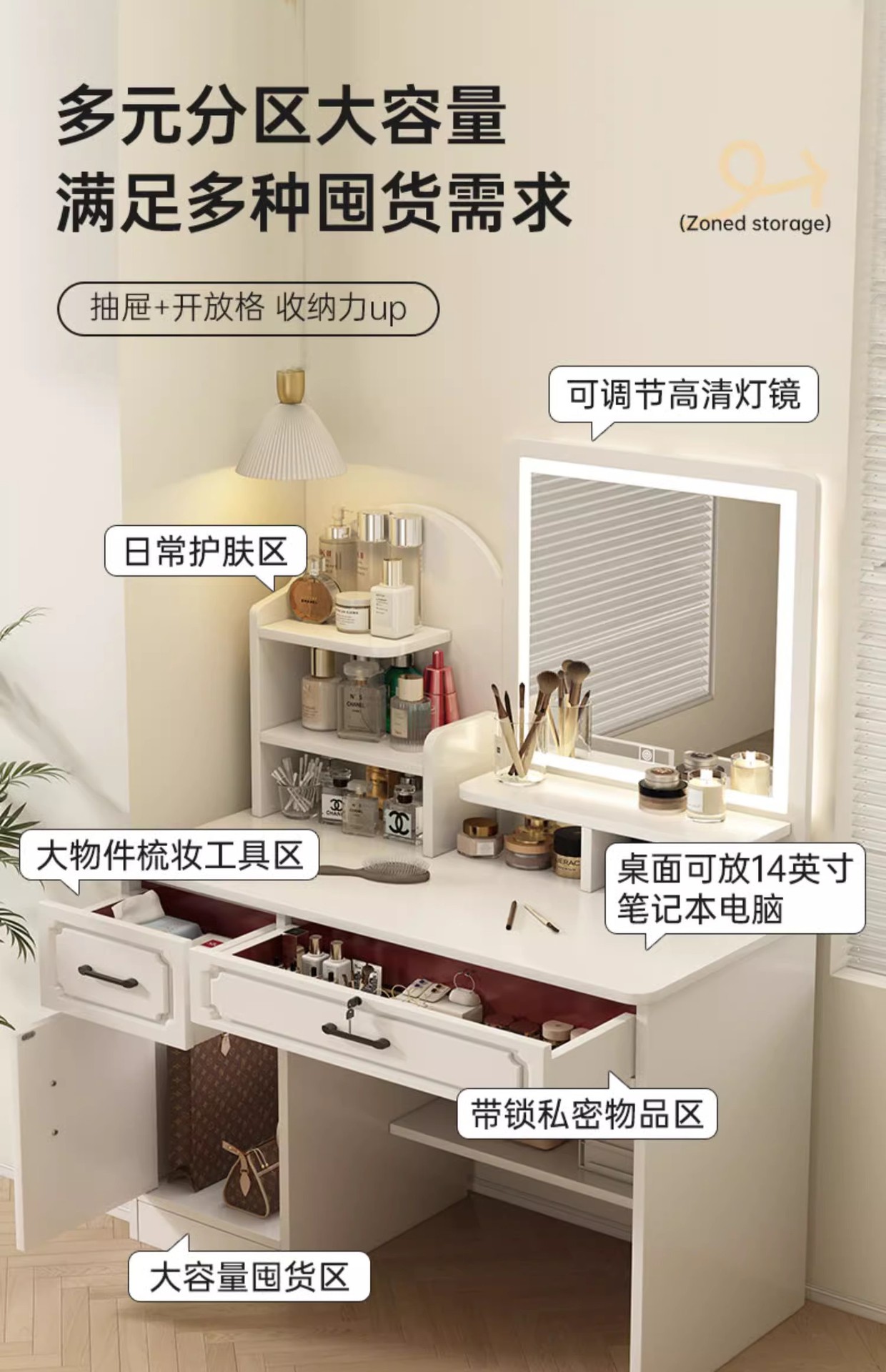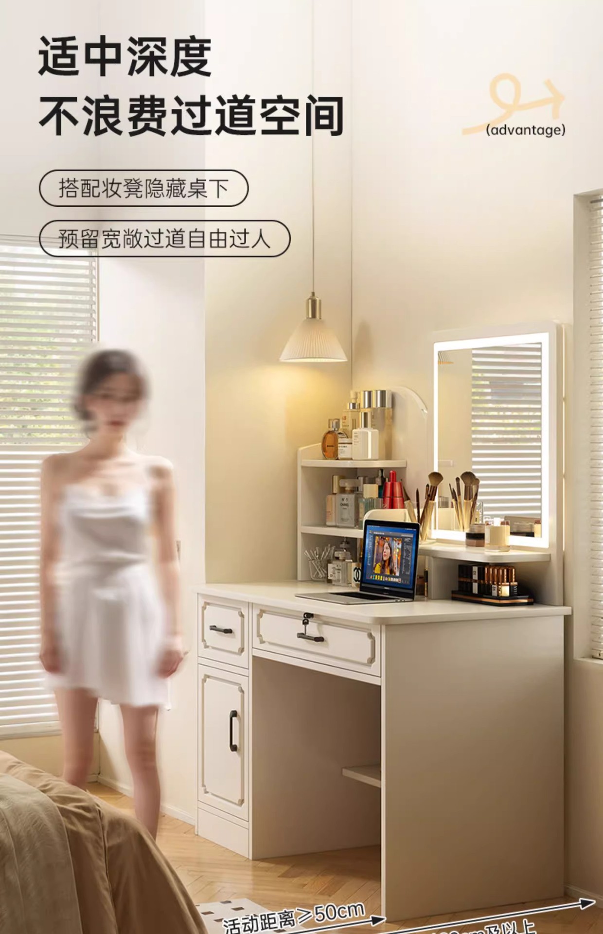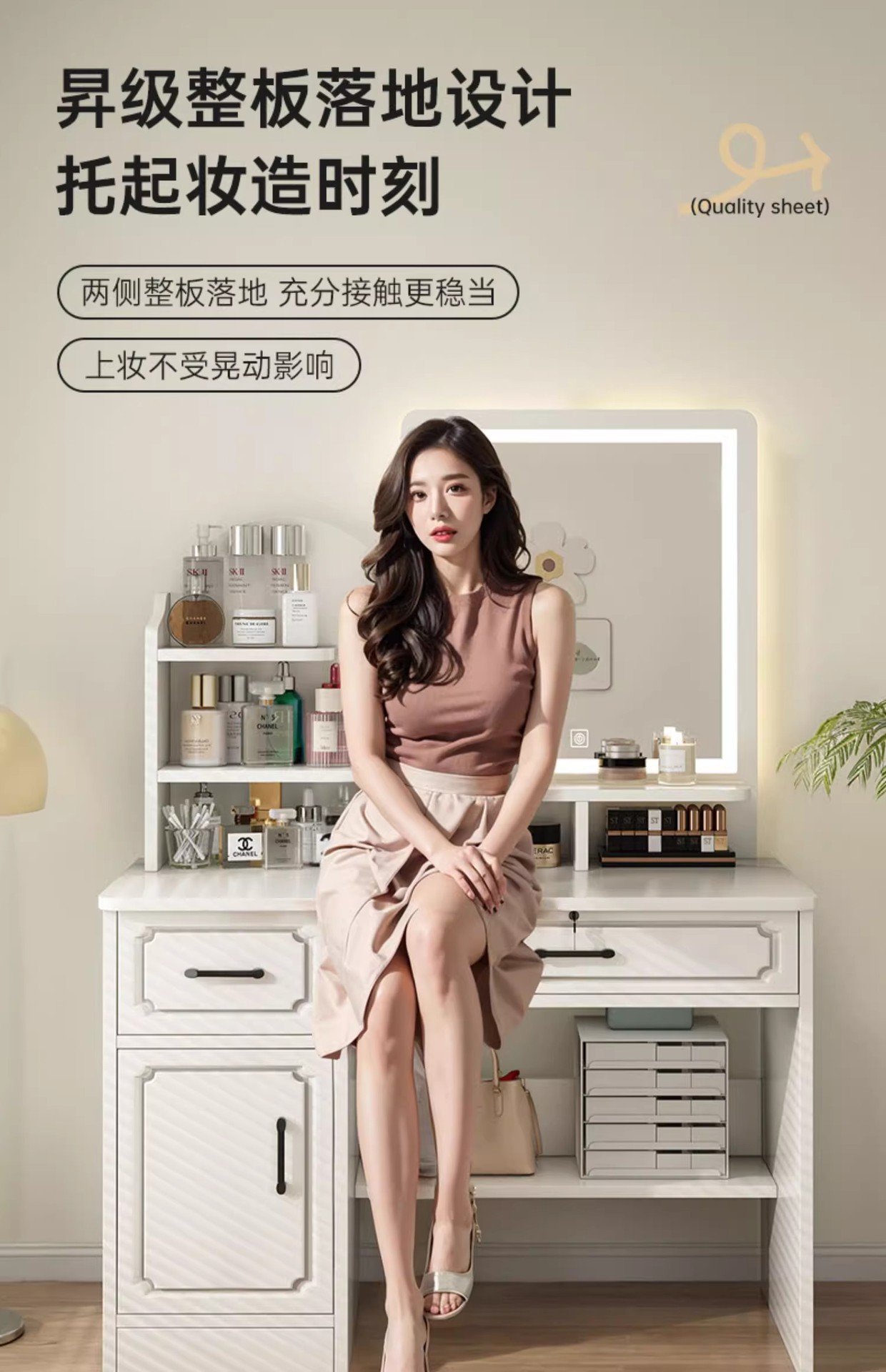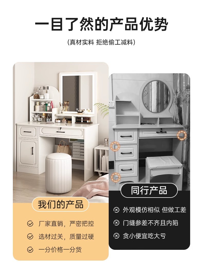 Comodador pequeño dormitorio simple moderno 2 en 1 escritorio mesa de maquillaje 2025 nuevo dormitorio principal espejo comodador