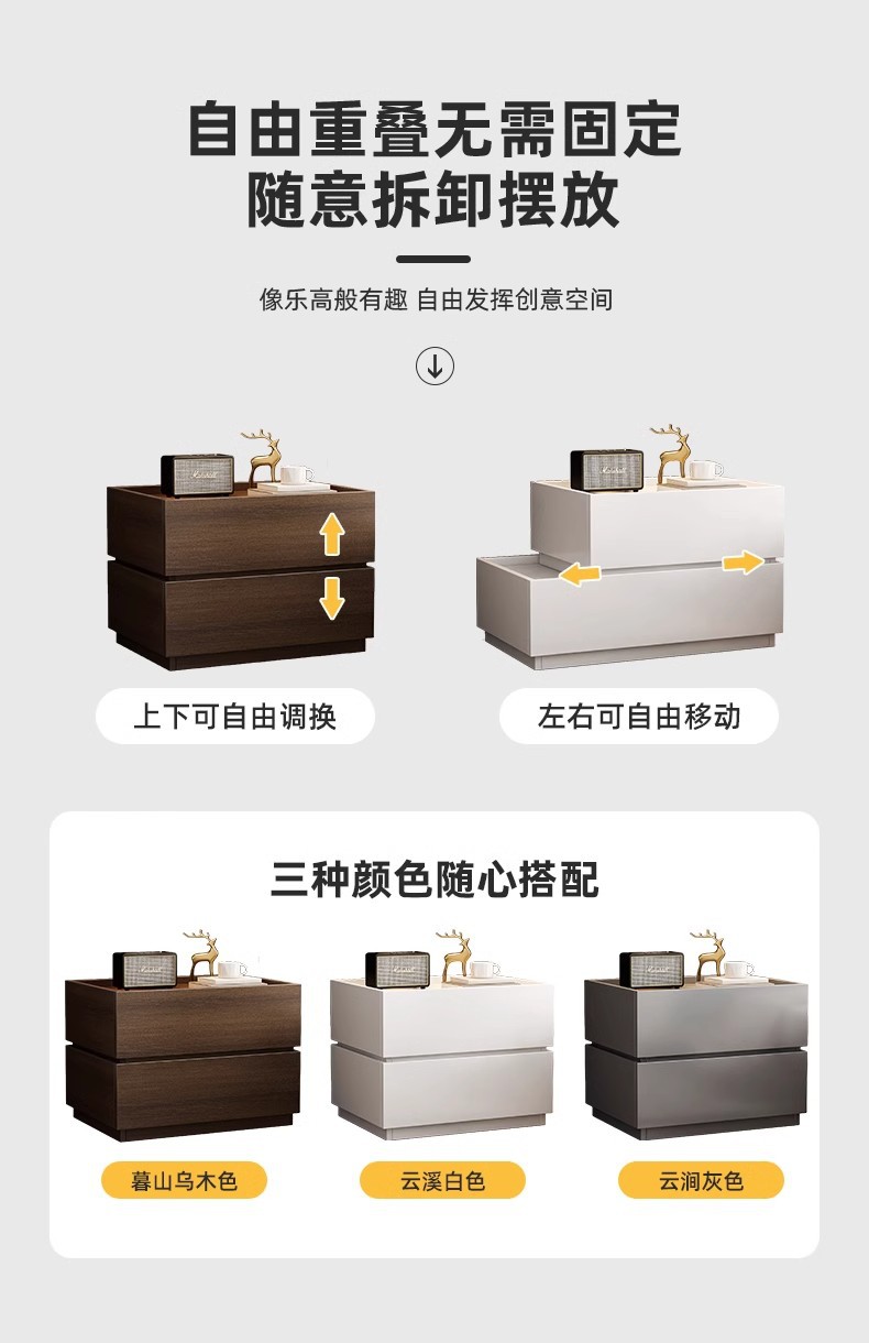 Mesita de noche Creative DIY Red Red Combinación 2025 Nuevo gabinete de almacenamiento Dormitorio doméstico Armario de almacenamiento simple y moderno