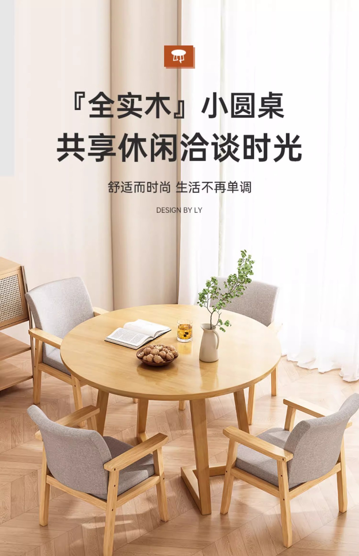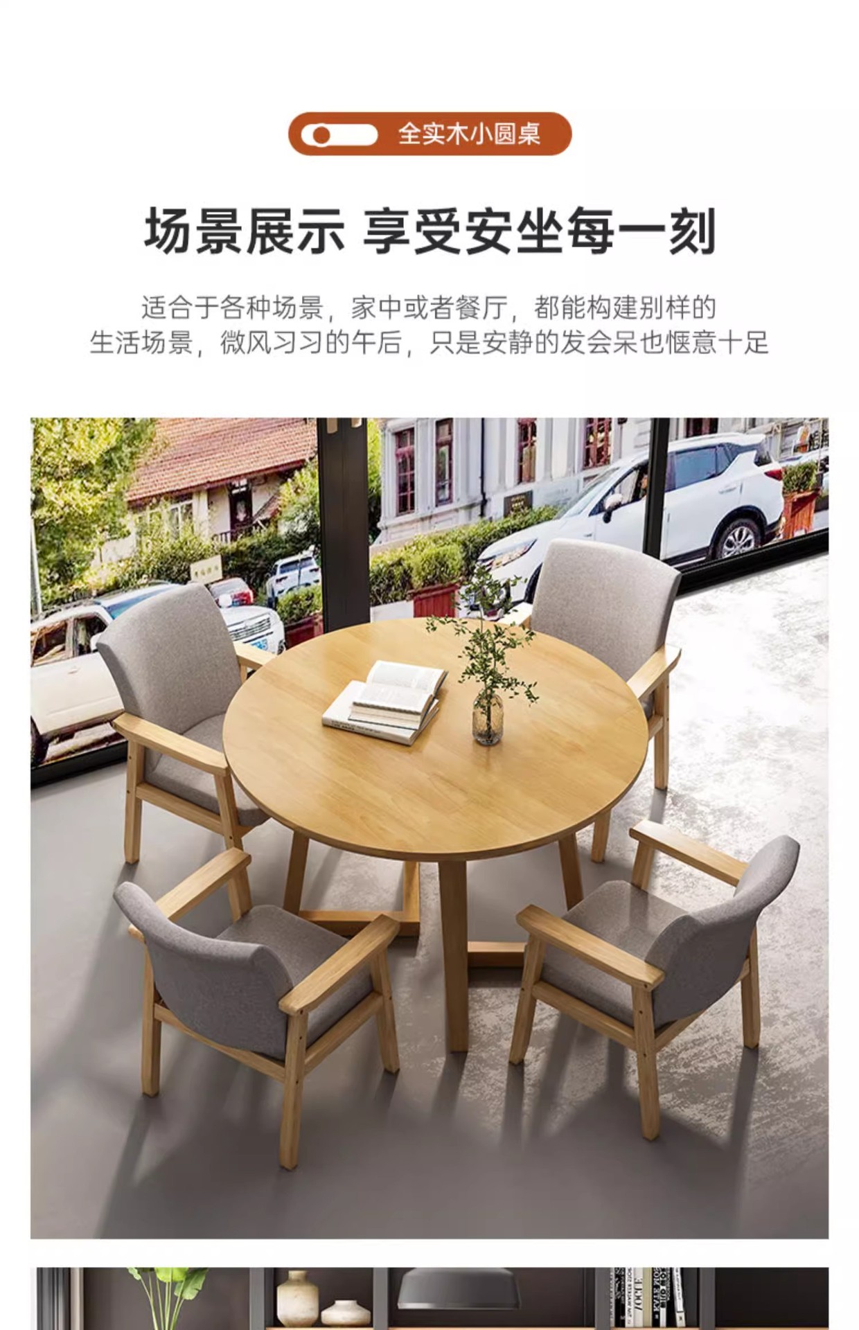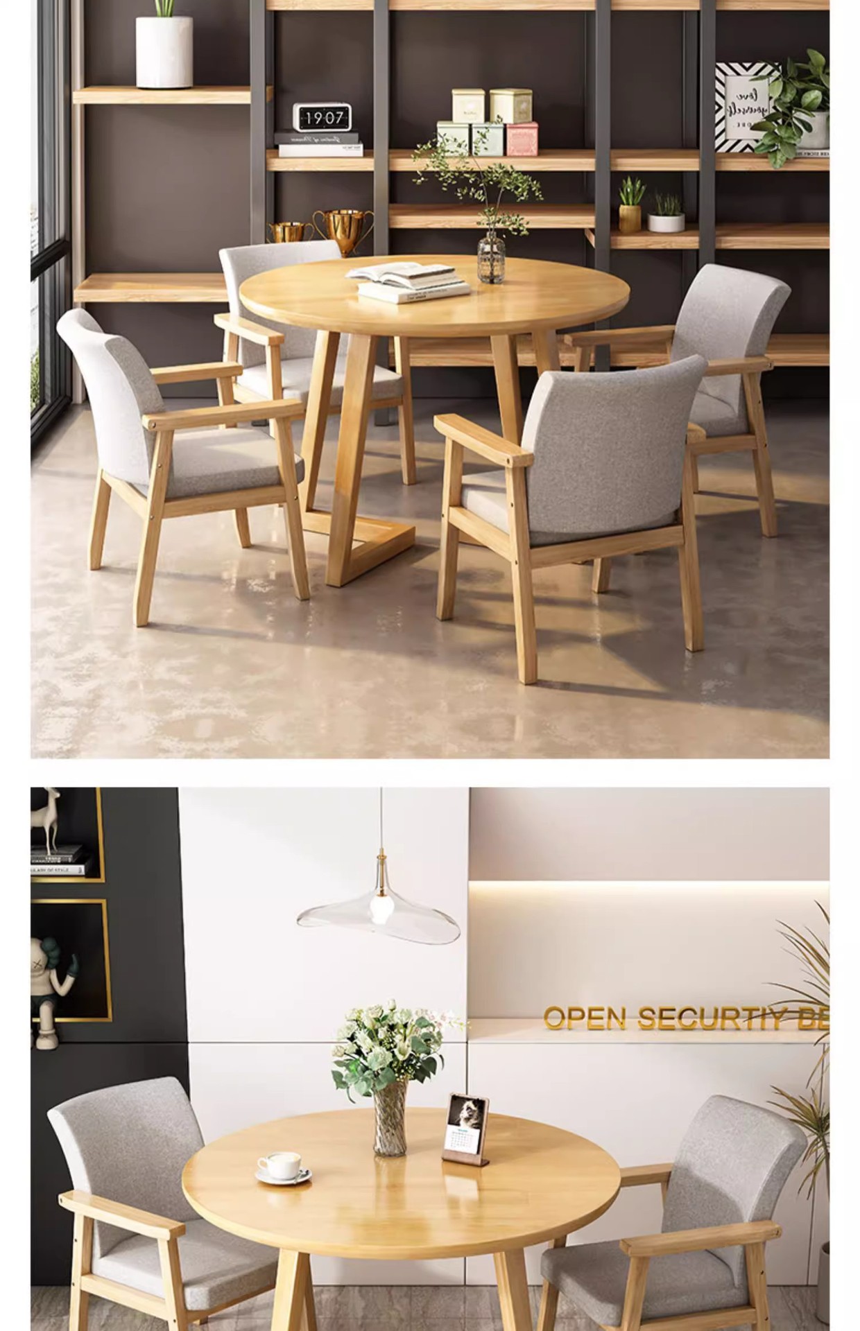 Mesa redonda de madera sólida, mesa de comedor redonda doméstica, mesa de negociación de recepción de negocios, mesa y silla de ocio en línea, tienda de té de leche roja