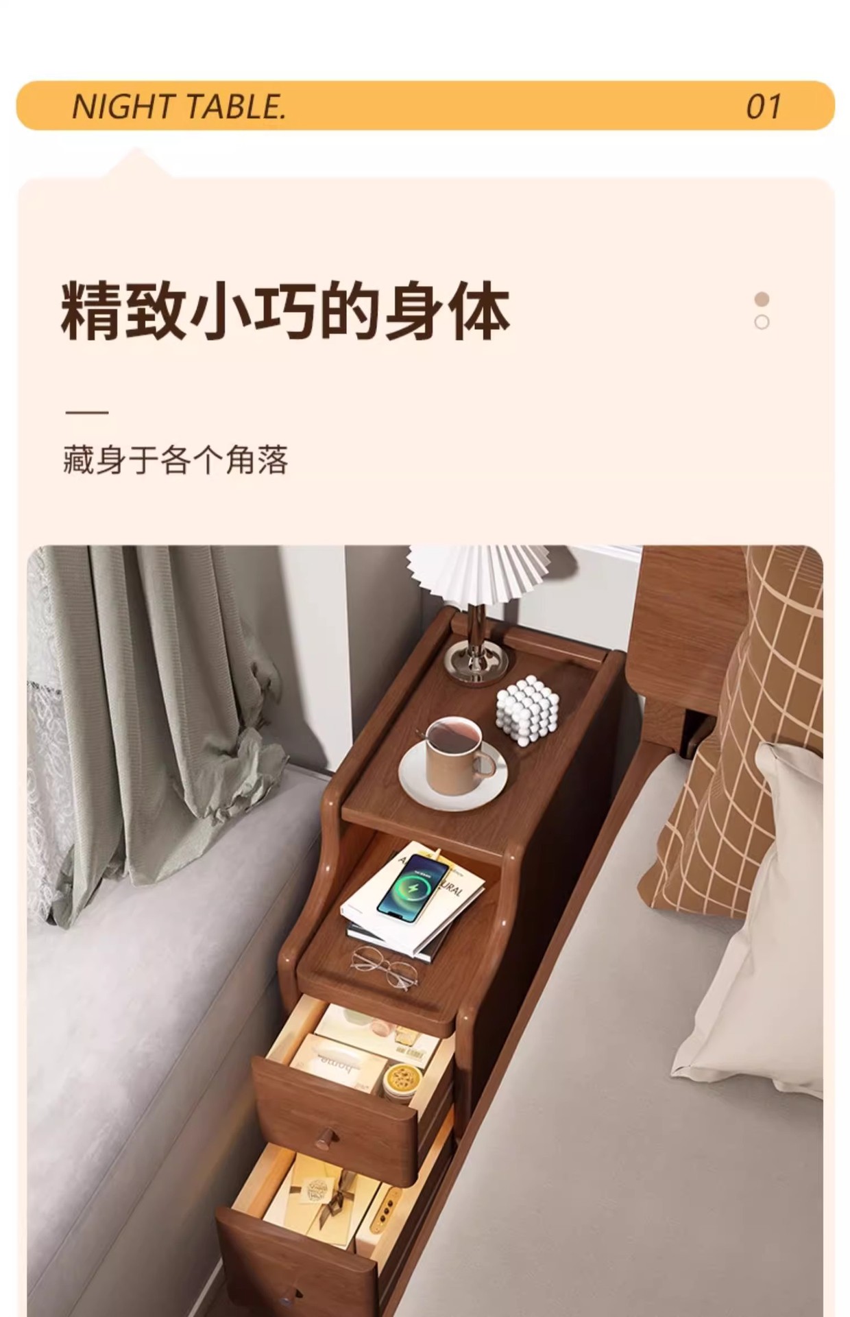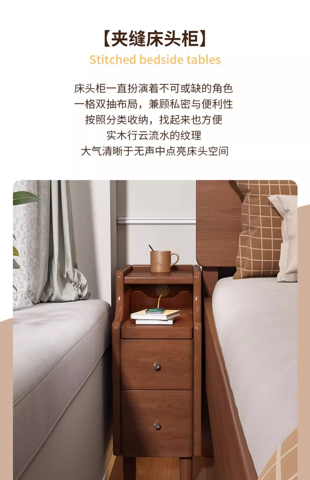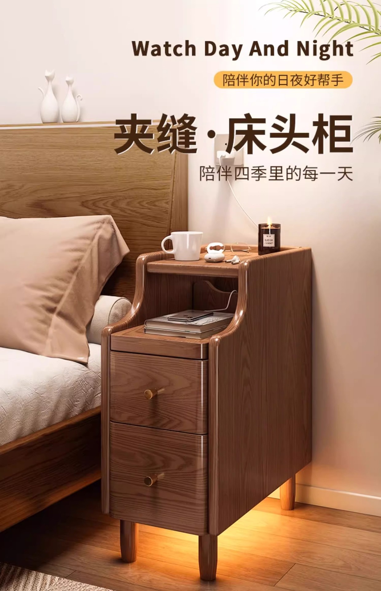 Mesa de cabecera muy estrecha, mini pequeño espacio de espacio, dormitorio pequeño gabinete de almacenamiento, simple al lado de la cama, mesa de cabecera ultra estrecha