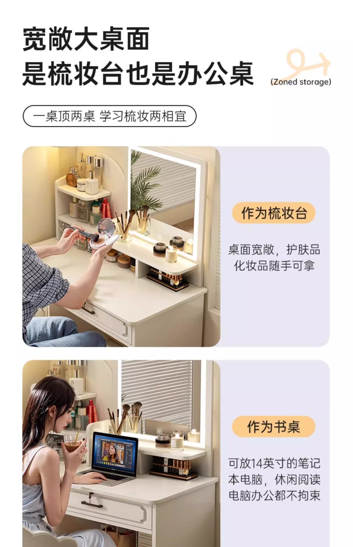 Dormitorio de tocador moderno y simple mesas de maquillaje en 2025 nuevo estilo de alta calidad dormitorio principal 2 en 1 mesas de escritorio mesas de maquillaje