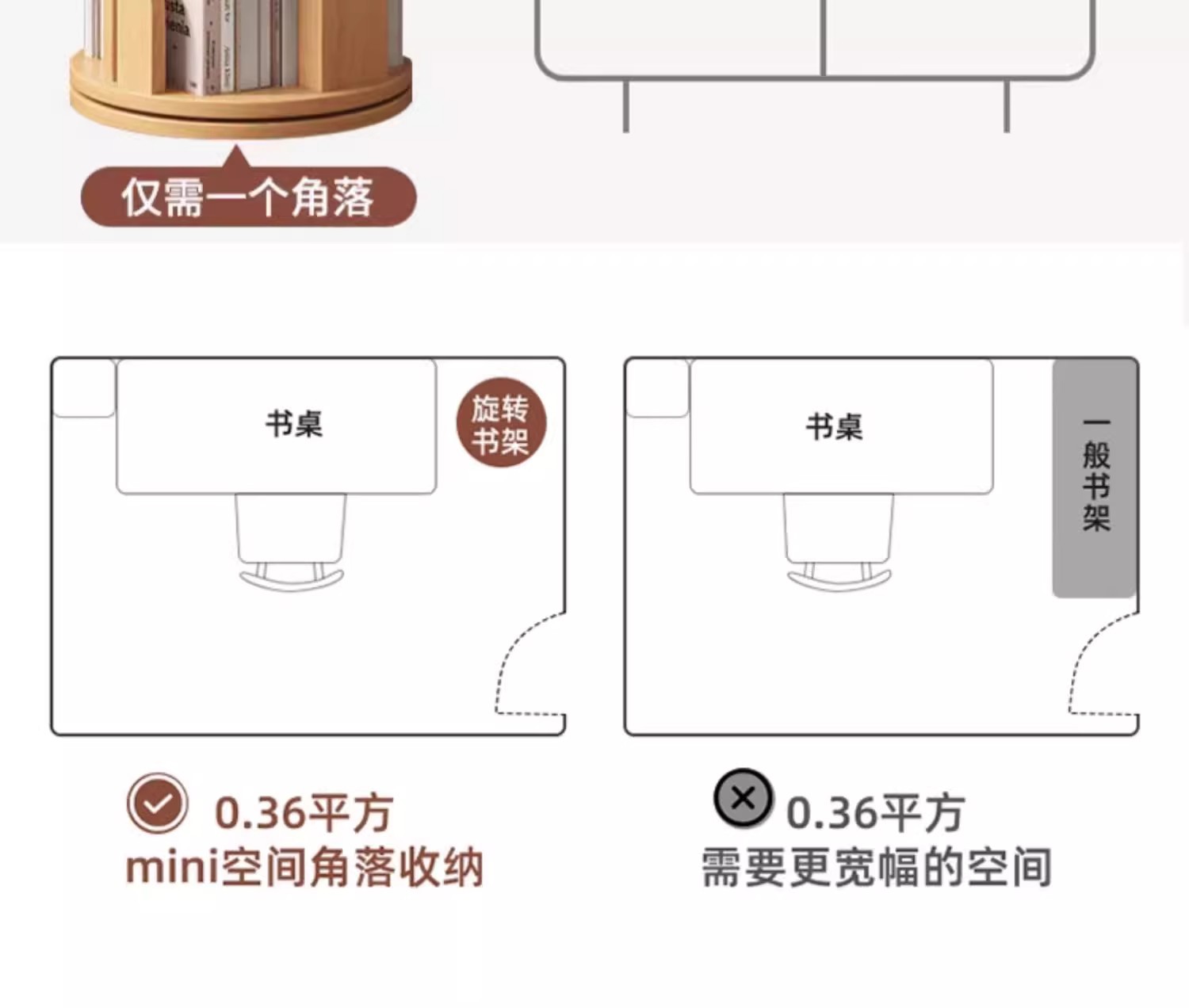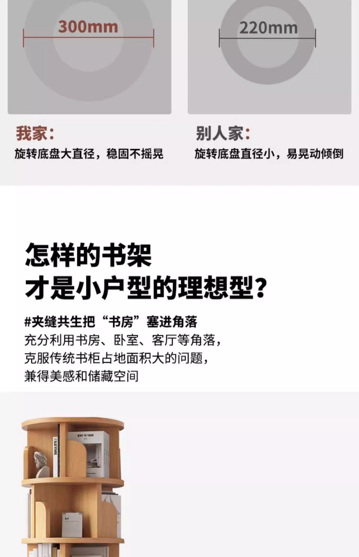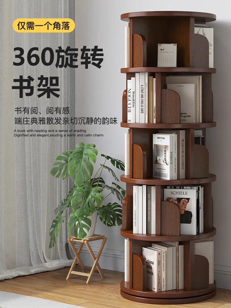 Estante de libros giratorio de sala de estar doméstica 360 grados estante de artículos con ruedas móviles estante de libros de pintura de estudiantes contra la pared gabinete