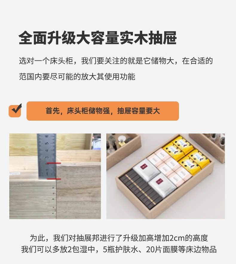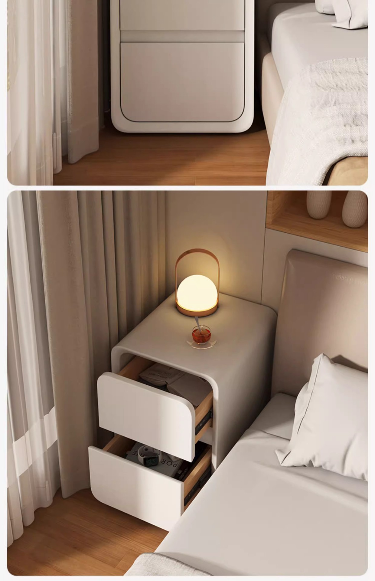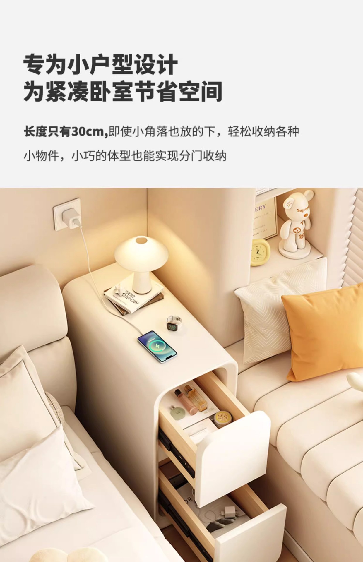 Cabina de cabecera de cama de aire de crema dormitorio pequeño ultra estrecho de hendidura cabina de lado de la cama sin instalación de cabina de almacenamiento de varios cajones dobles