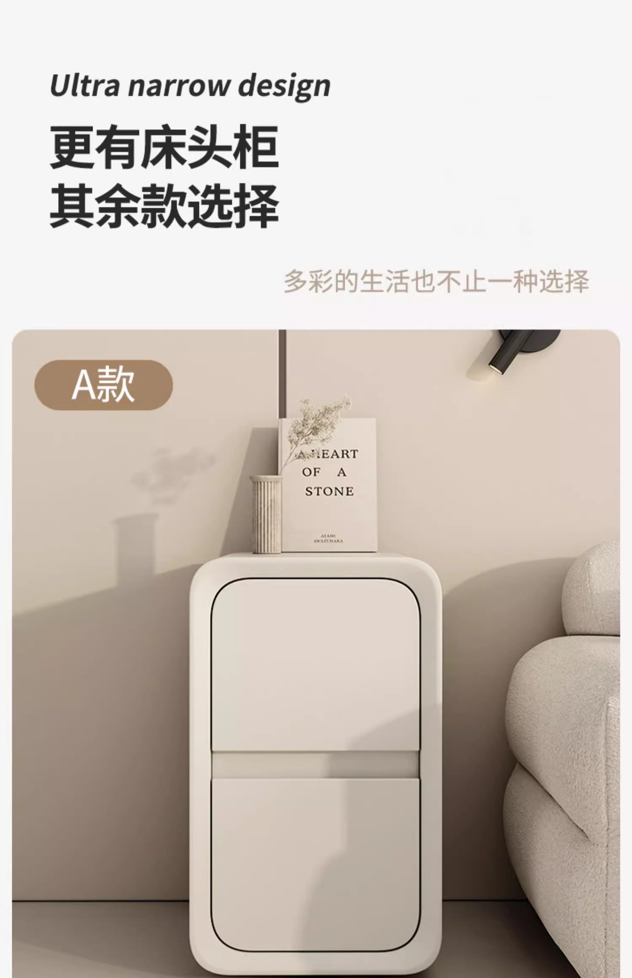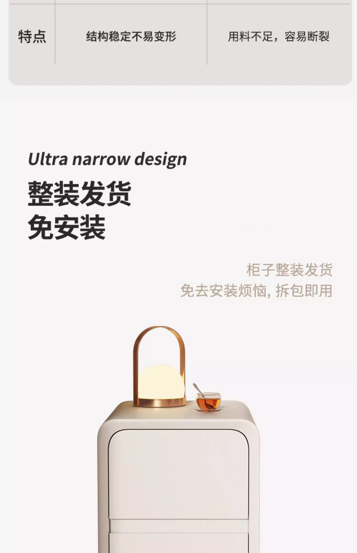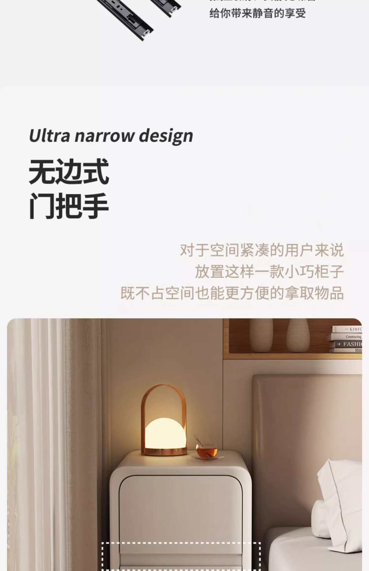 Cabina de cabecera de cama de aire de crema dormitorio pequeño ultra estrecho de hendidura cabina de lado de la cama sin instalación de cabina de almacenamiento de varios cajones dobles