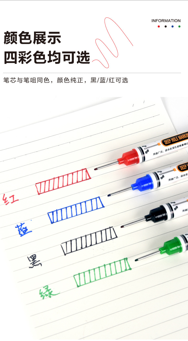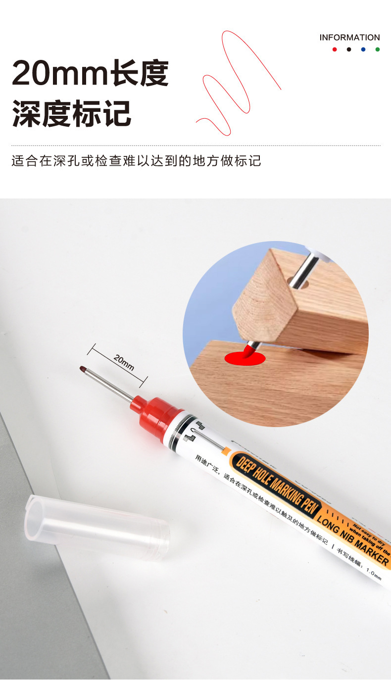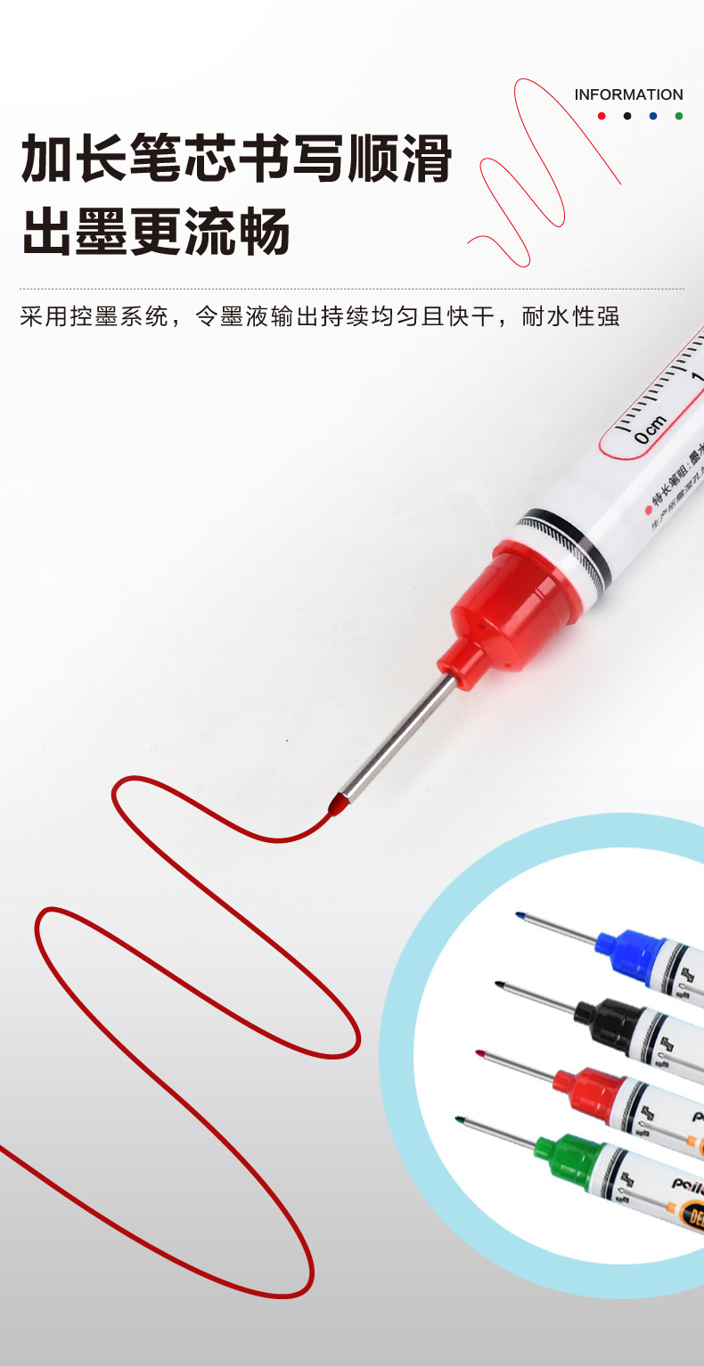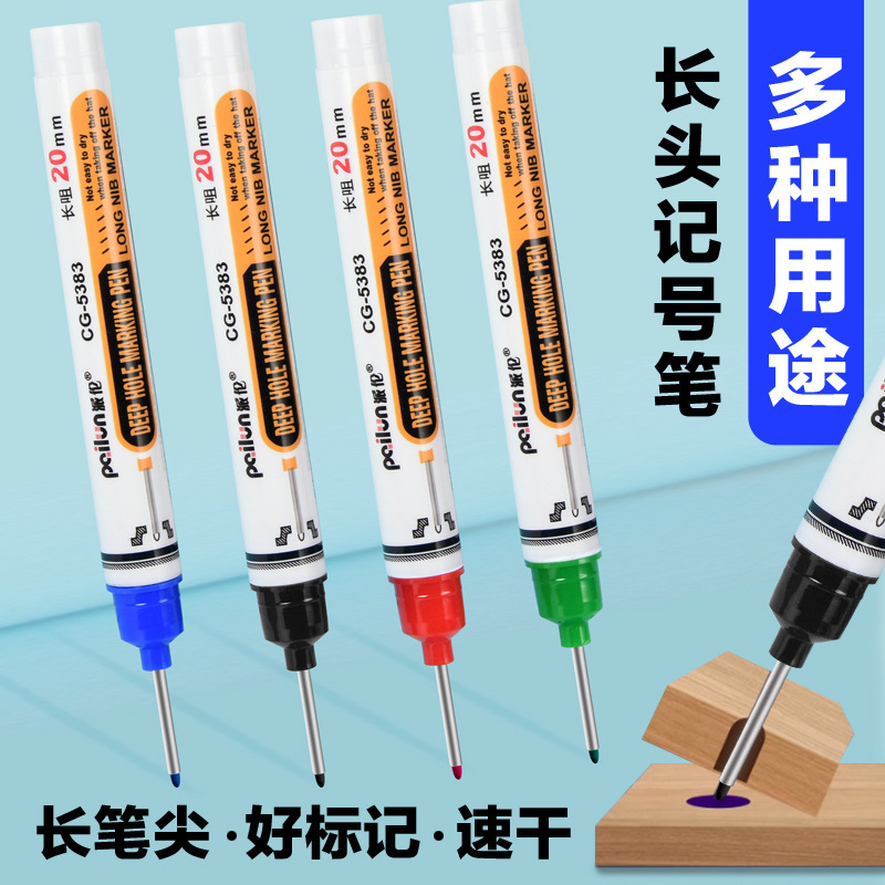 Marcador para carpintería a base de aceite, uso de marcado de baldosas, dibujo de líneas, marcado de agujeros profundos negros, bolígrafo fino de un solo cabezal