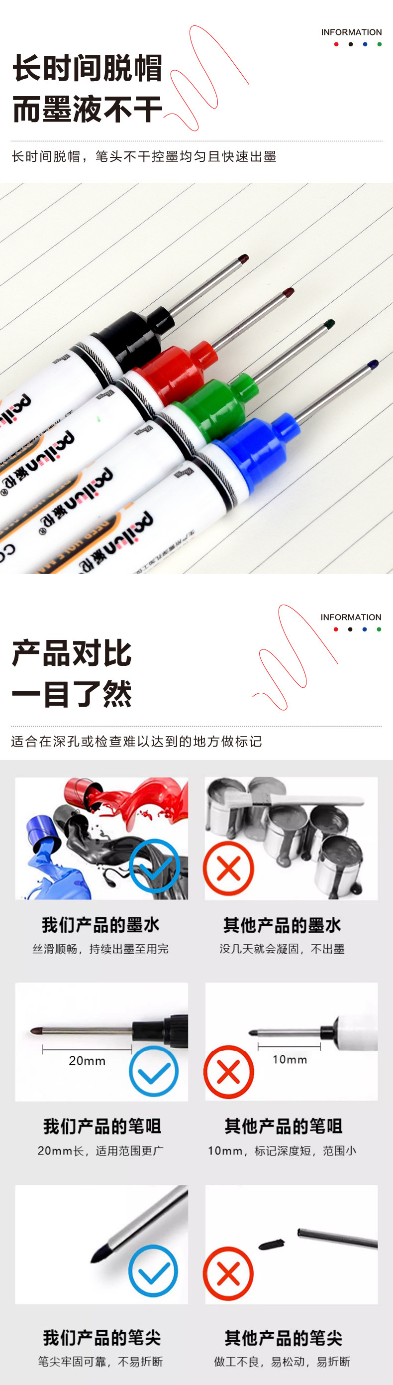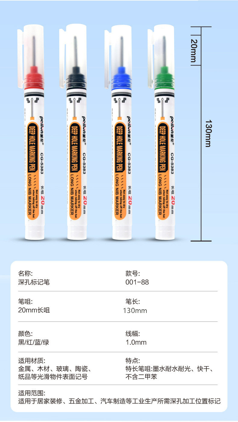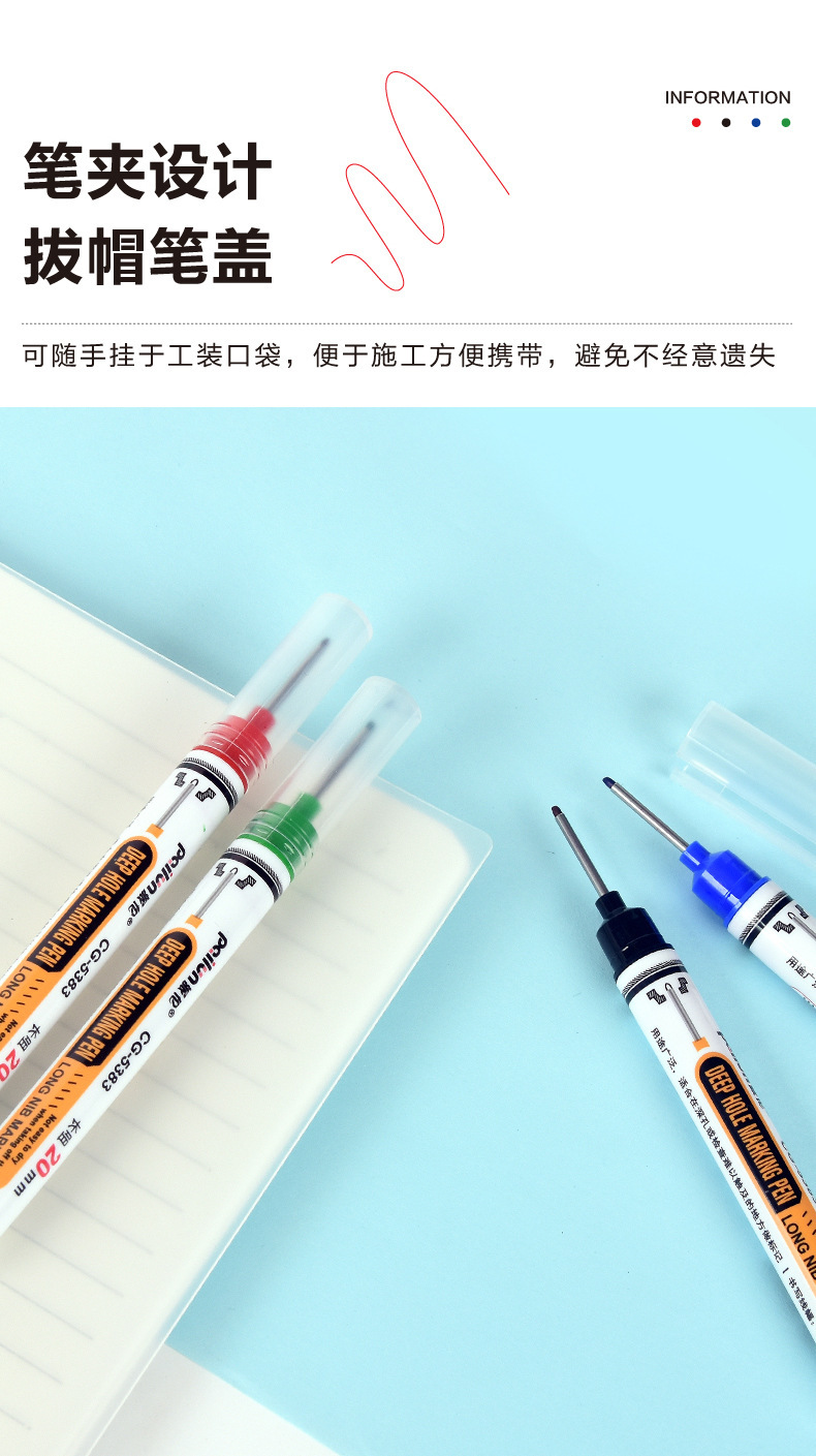 Marcador para carpintería a base de aceite, uso de marcado de baldosas, dibujo de líneas, marcado de agujeros profundos negros, bolígrafo fino de un solo cabezal