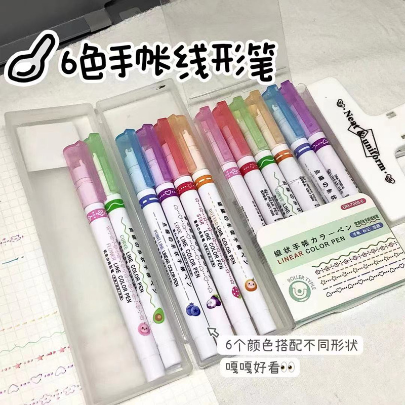 Bolígrafo con forma de onda y puntos redondos, marcador de doble punta, bolígrafo colorido para diario, bolígrafo de caligrafía para estudiantes, marcador de alta calidad, bolígrafo especial.