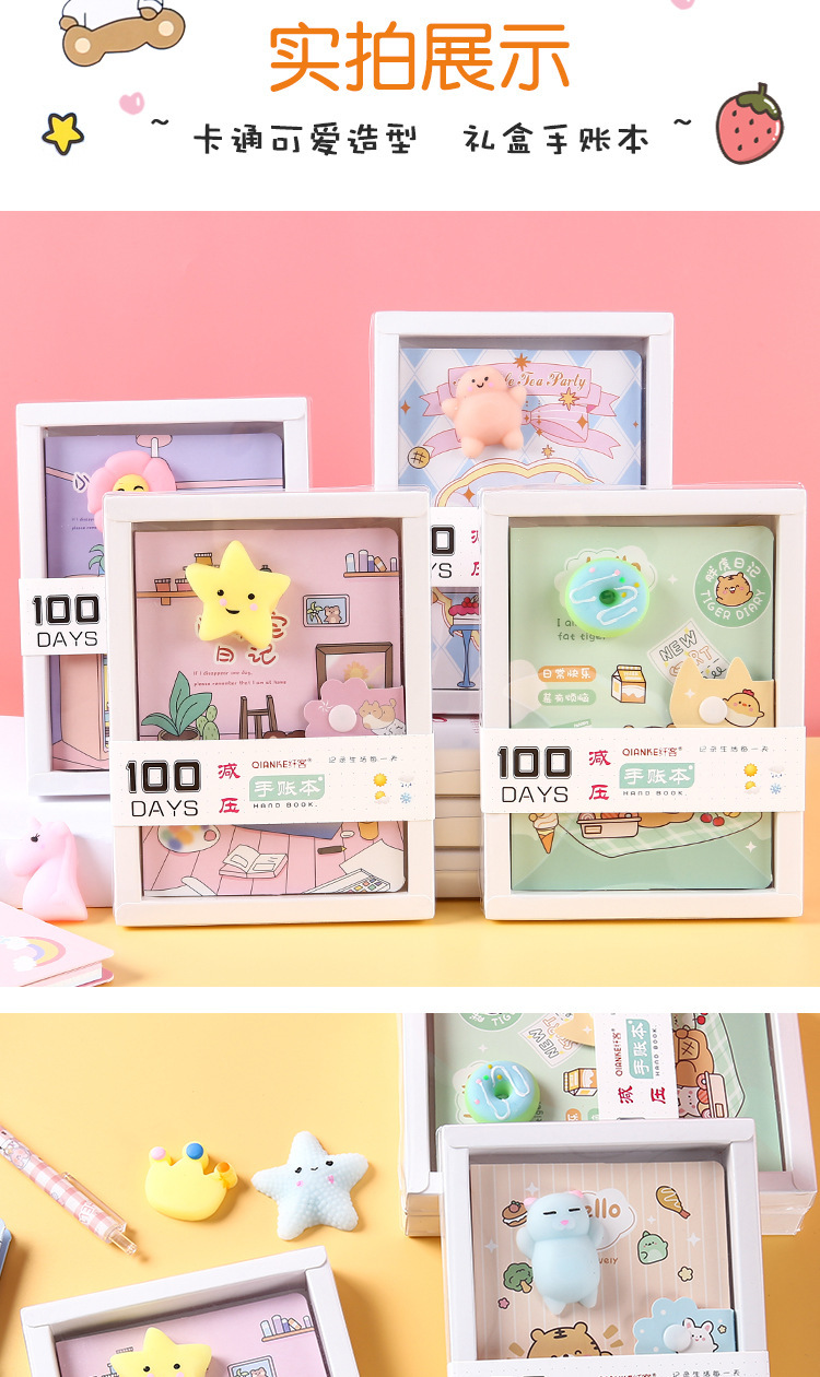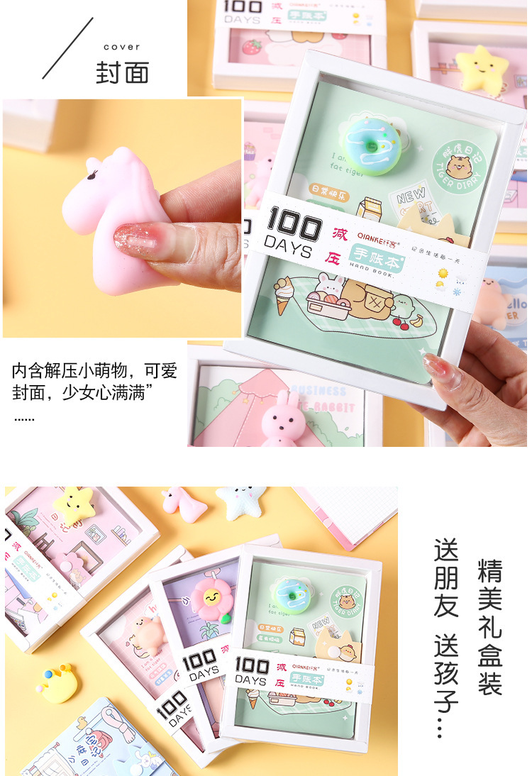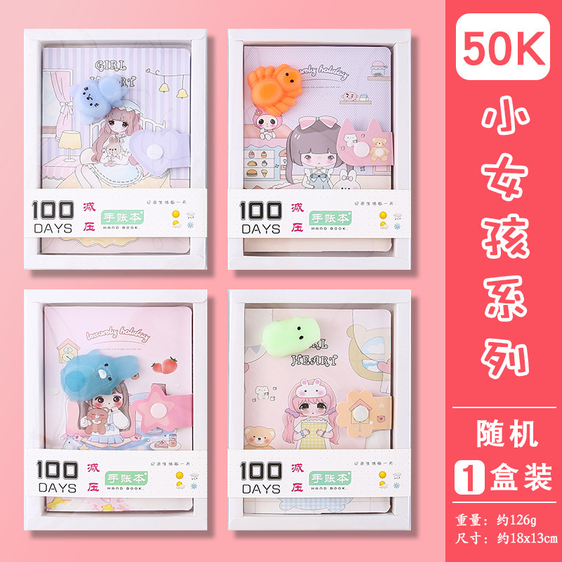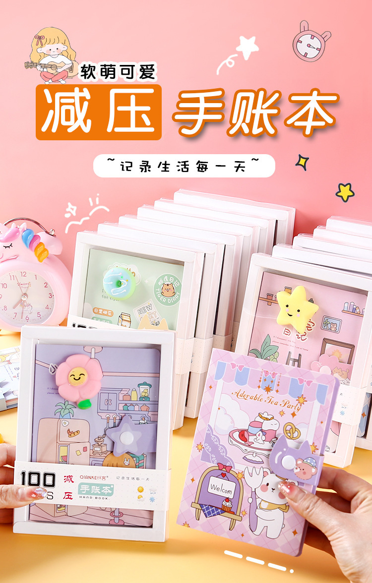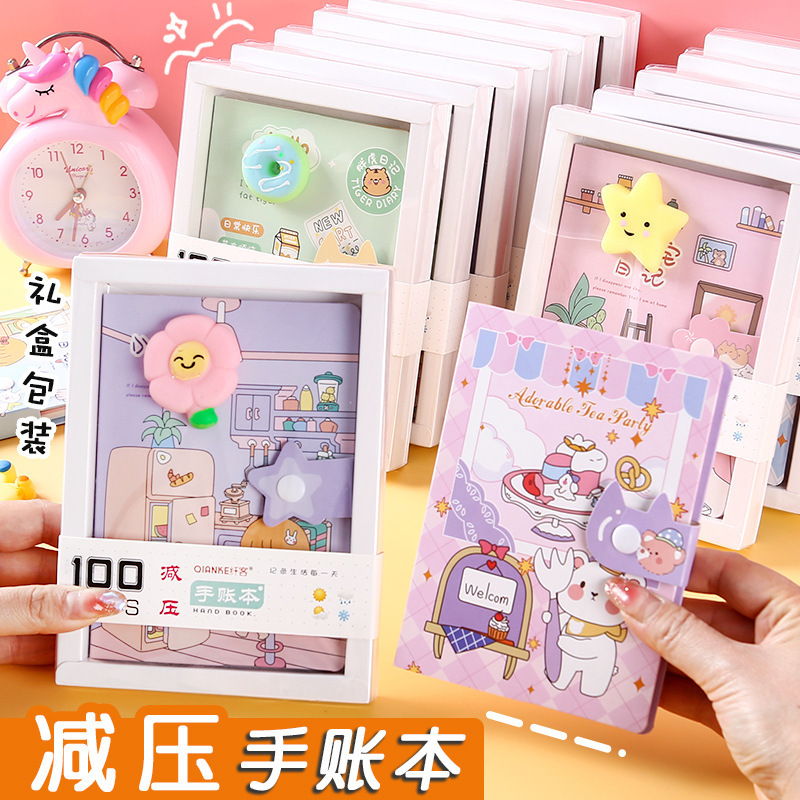 Cuaderno de mano de dibujos animados, descompresión, cuaderno de páginas en color, descompresión, cuaderno de mano de estudiante, caja de regalo, papelería de regalo
