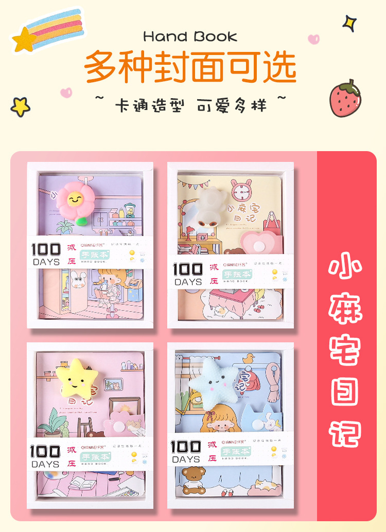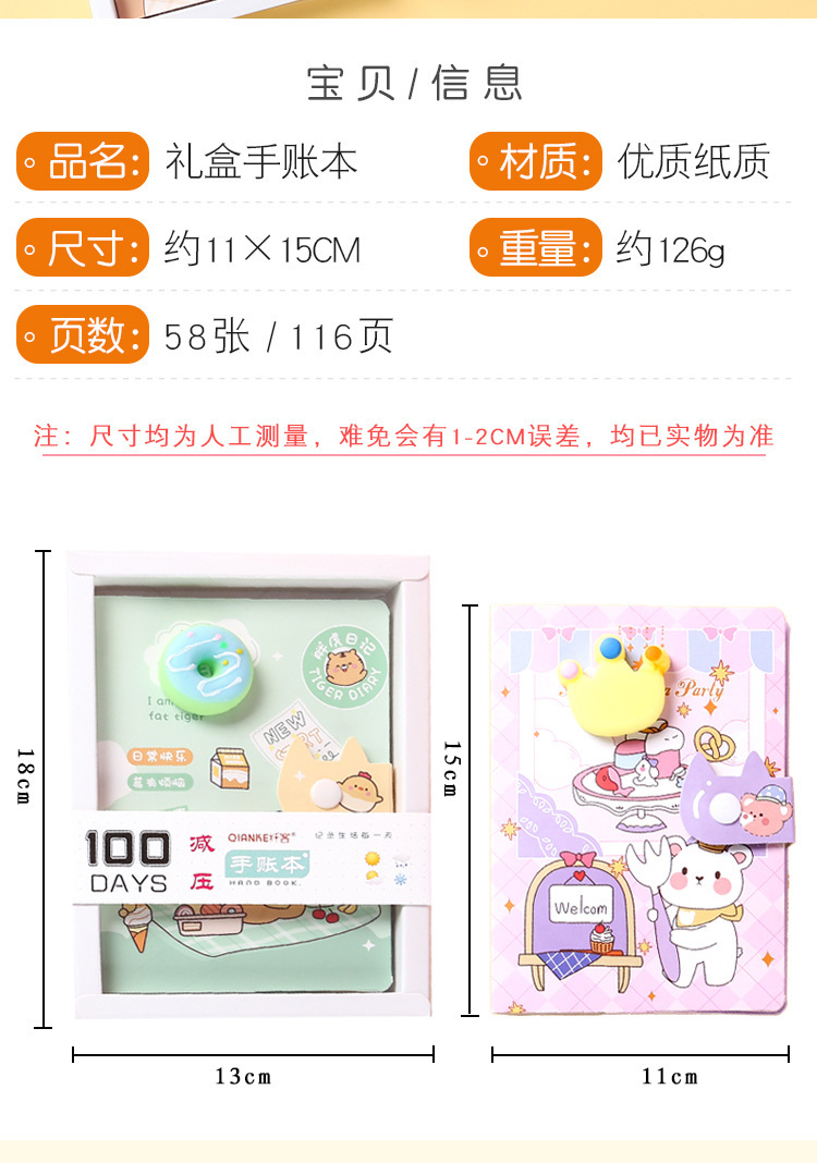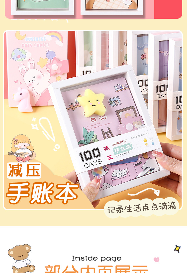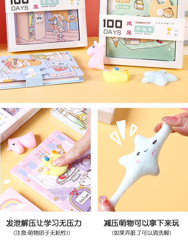 Cuaderno de mano de dibujos animados, descompresión, cuaderno de páginas en color, descompresión, cuaderno de mano de estudiante, caja de regalo, papelería de regalo