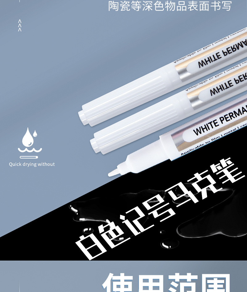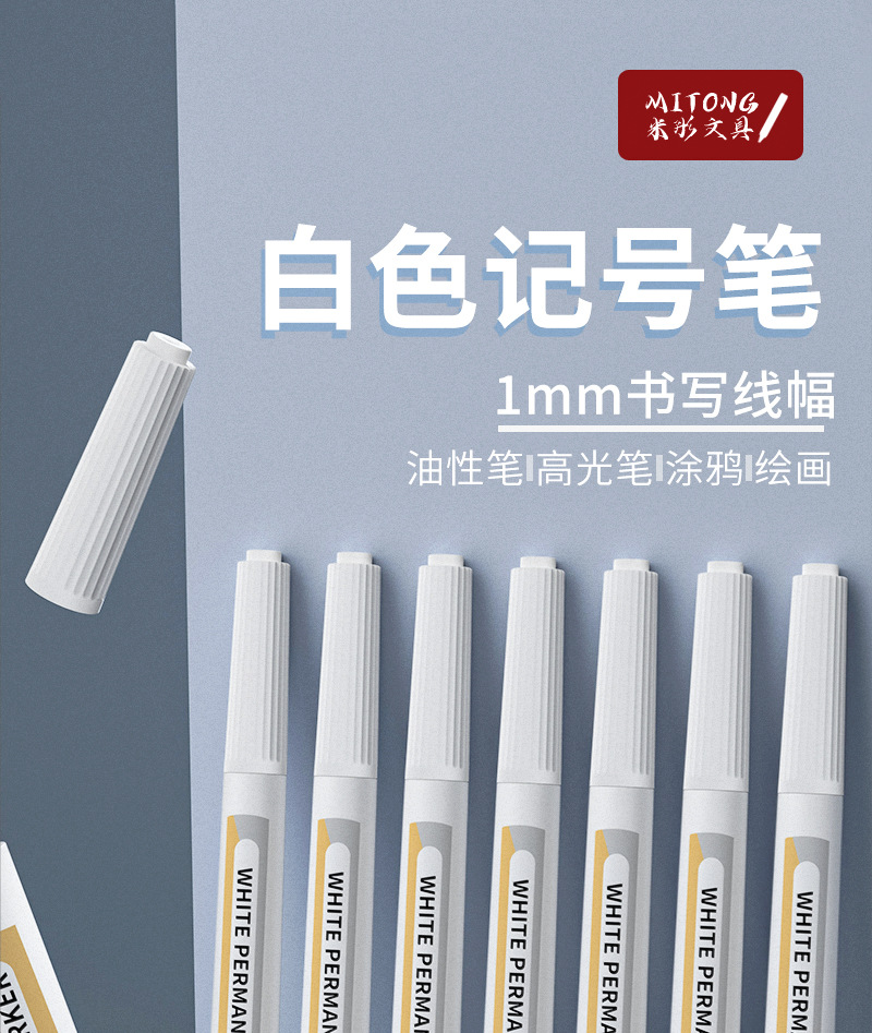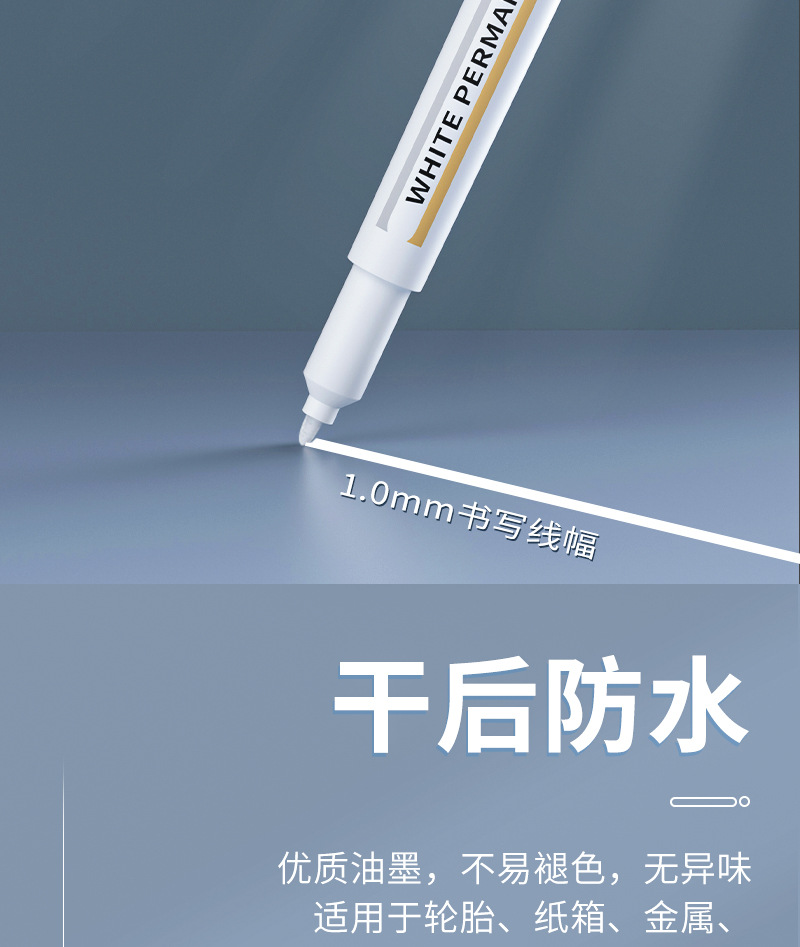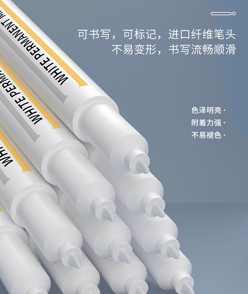 Marcador blanco sin decoloración impermeable cabeza delgada industrial de secado rápido pluma blanca Arte resaltado pluma marcador blanco