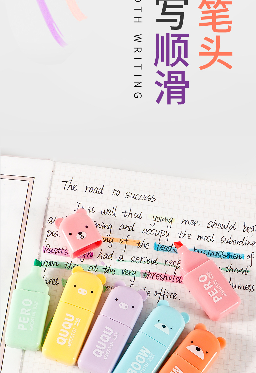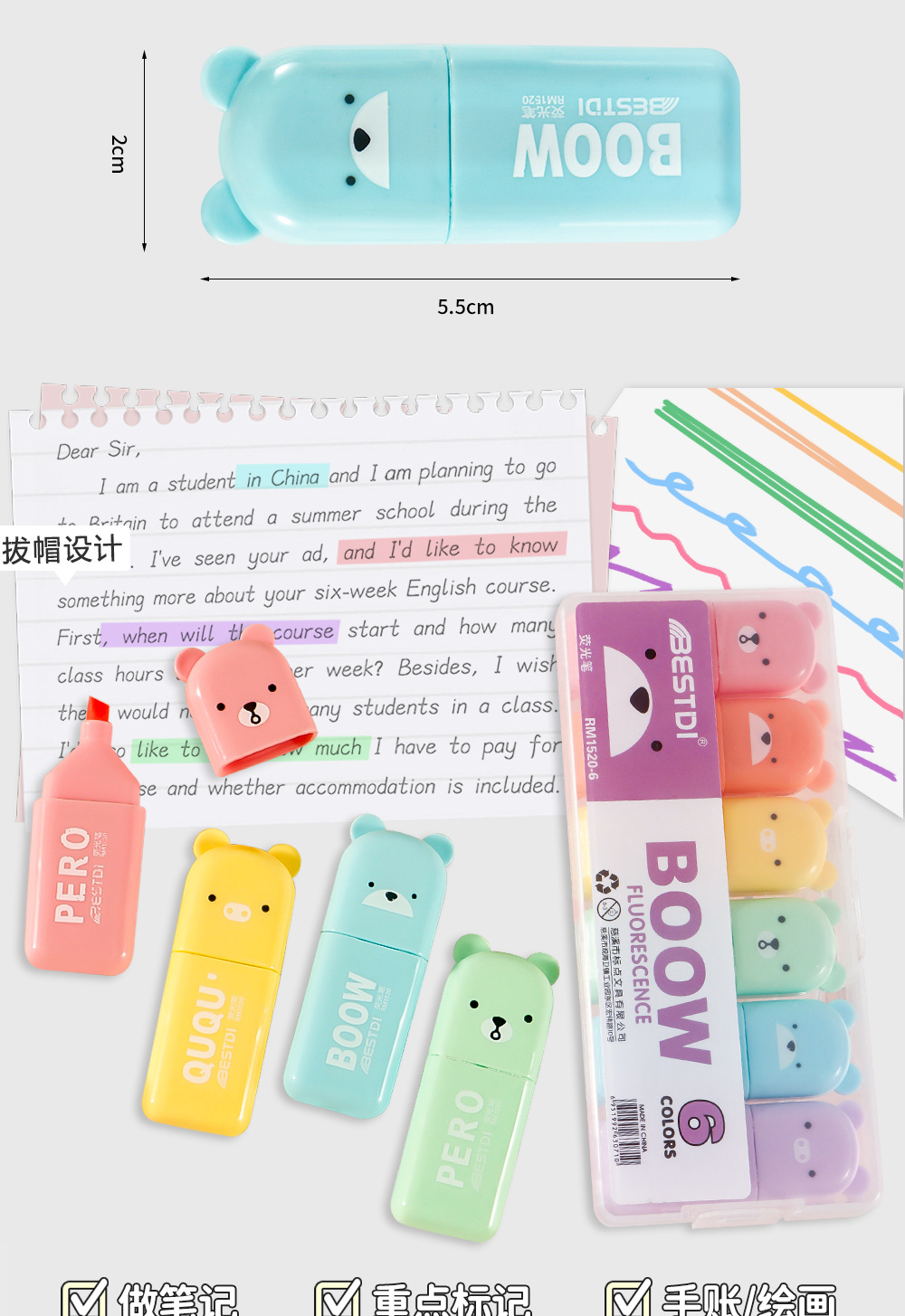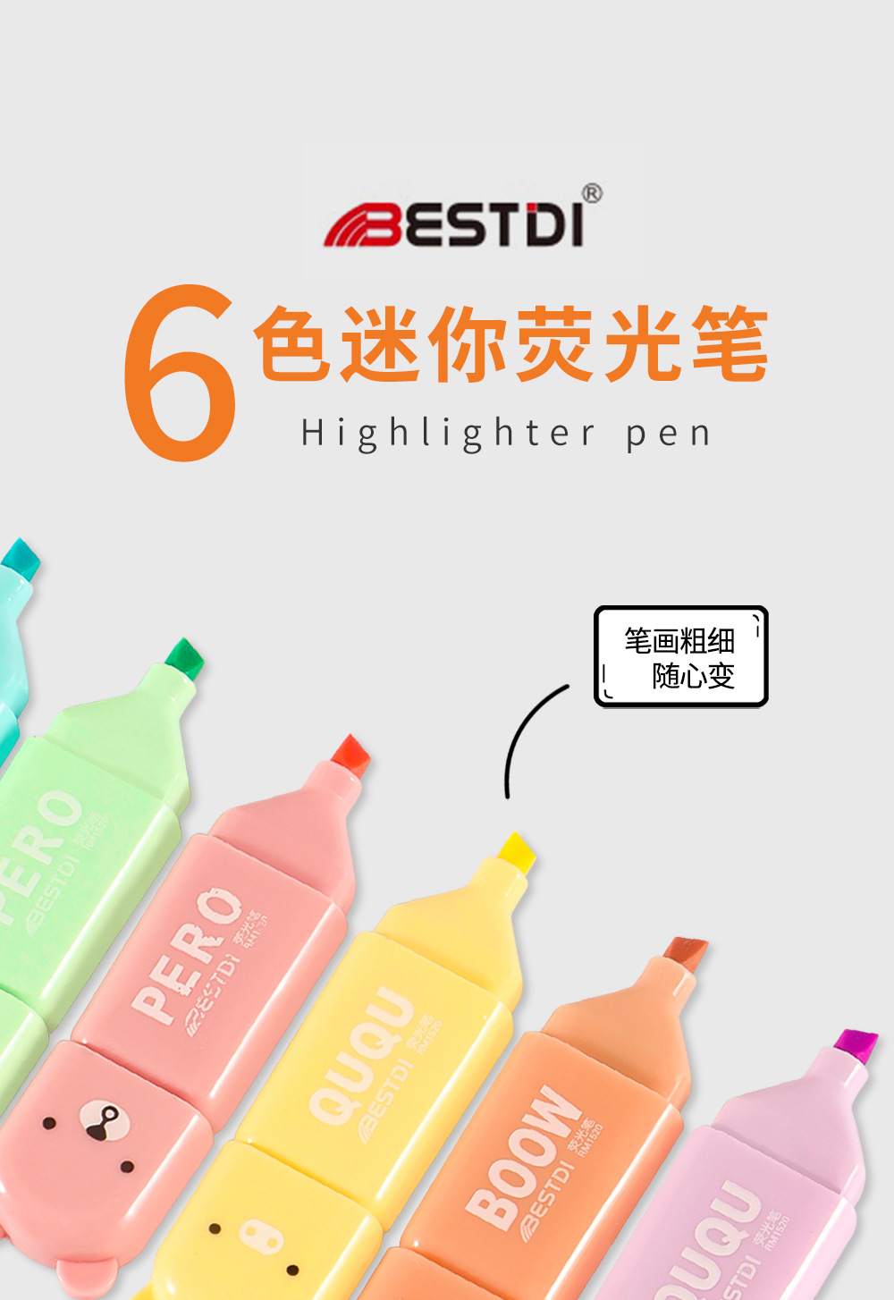 Nuevo conjunto de mini resaltador para estudiantes cuentas de dibujos animados graffiti pluma resaltador clave marcador