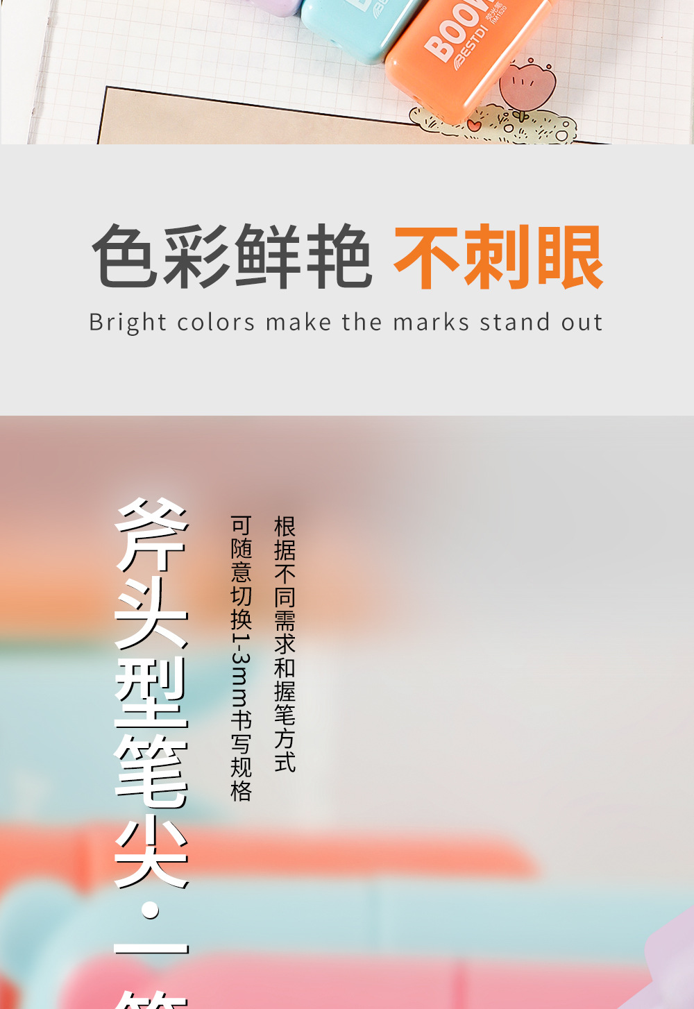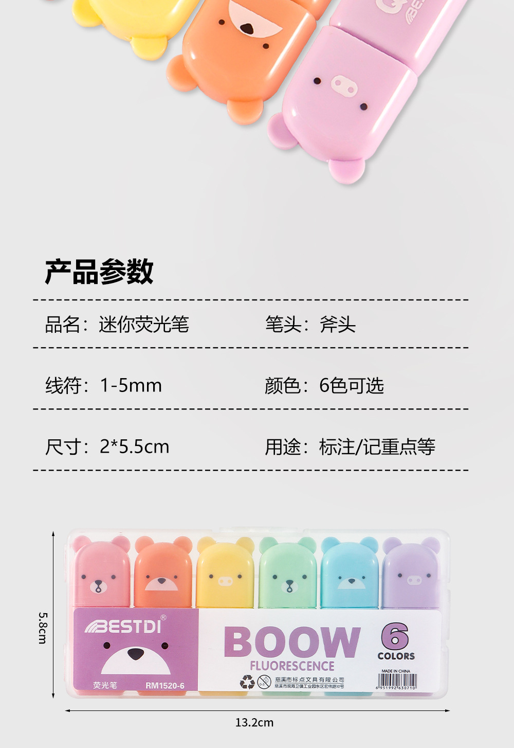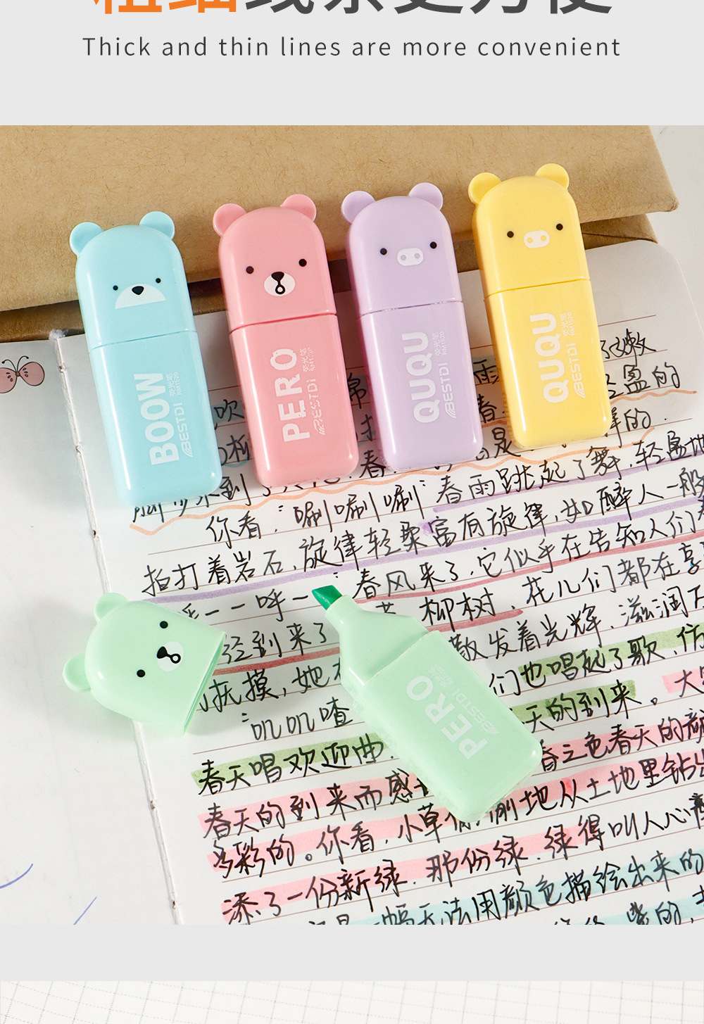Nuevo conjunto de mini resaltador para estudiantes cuentas de dibujos animados graffiti pluma resaltador clave marcador