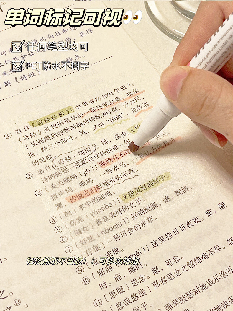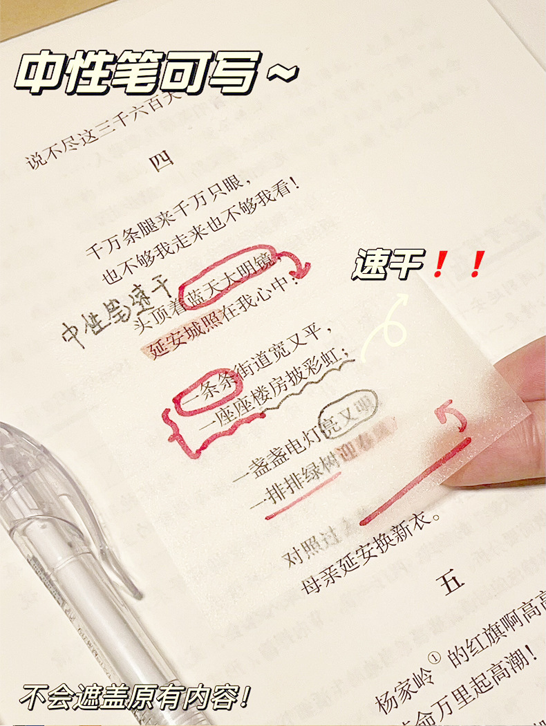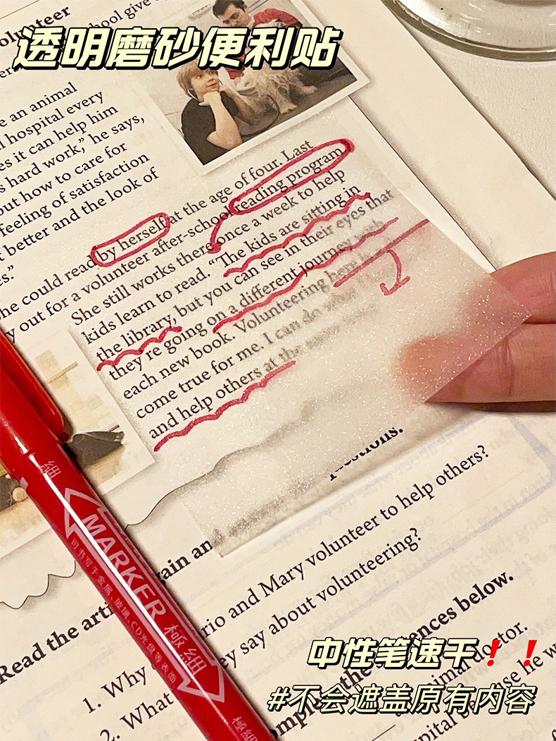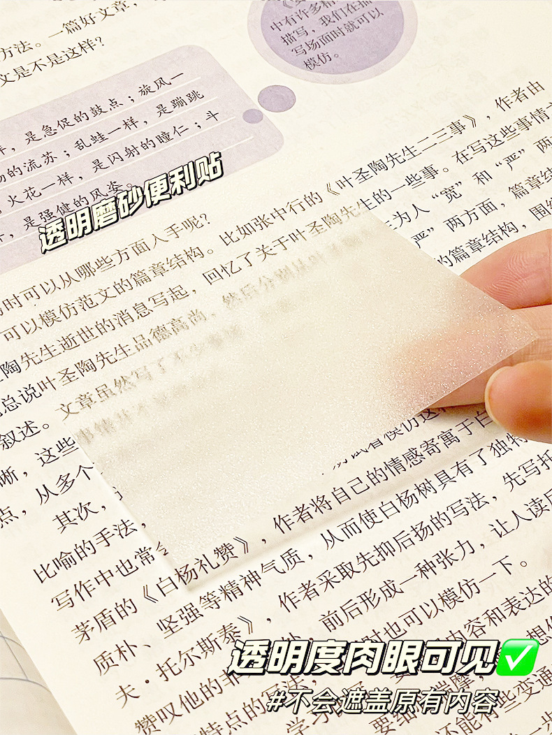 Nota adhesiva esmerilada transparente notas del estudiante nota adhesiva fuerte de alta apariencia papelería de oficina nota adhesiva al por mayor