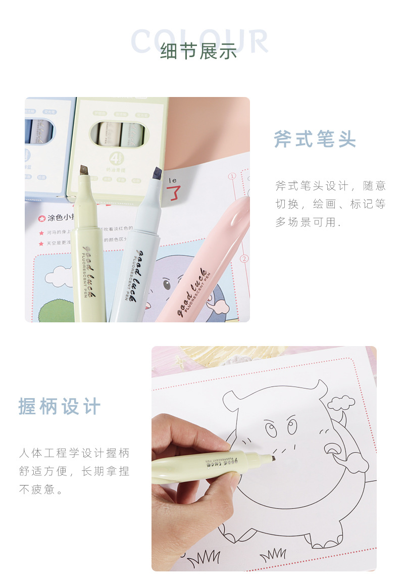 Suave cabeza highlighter de color de alta gradiente de color estudiante diario pluma clave marcado pluma colorear oblicua cabeza resaltador traje