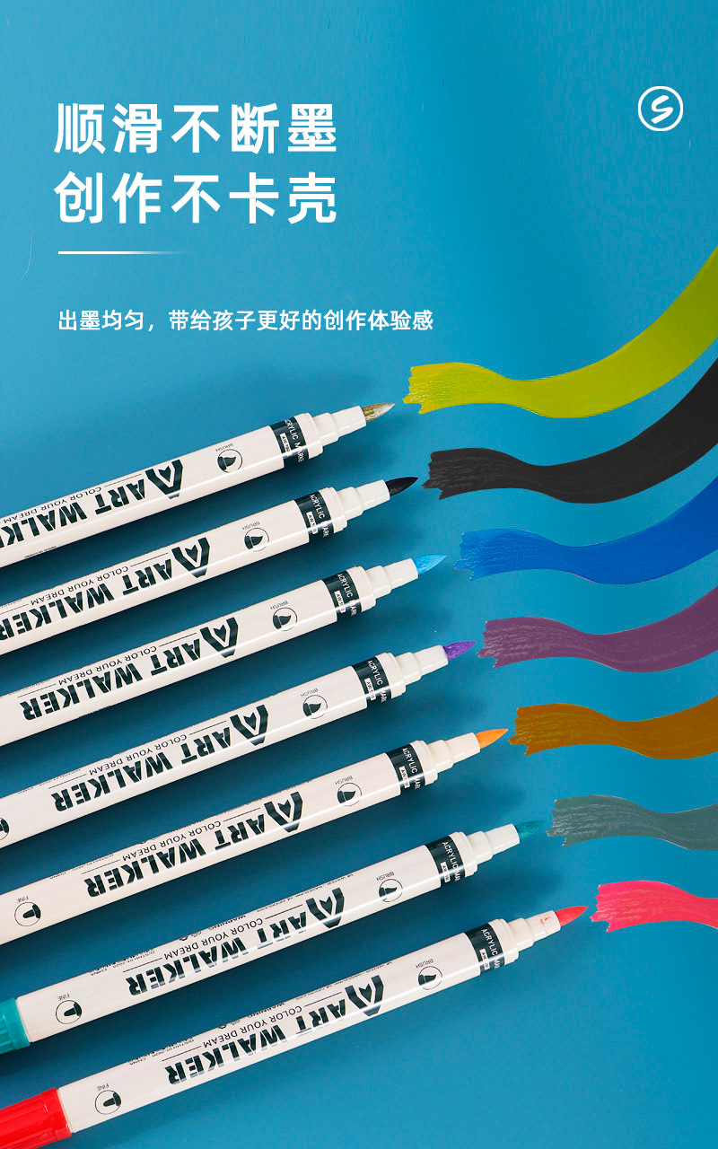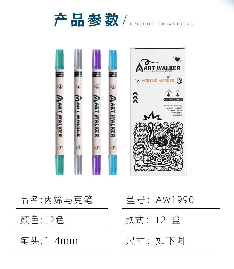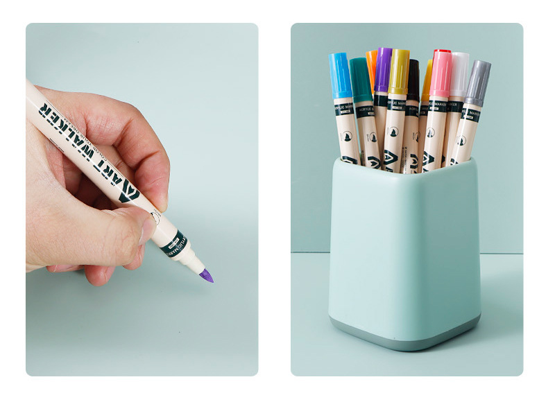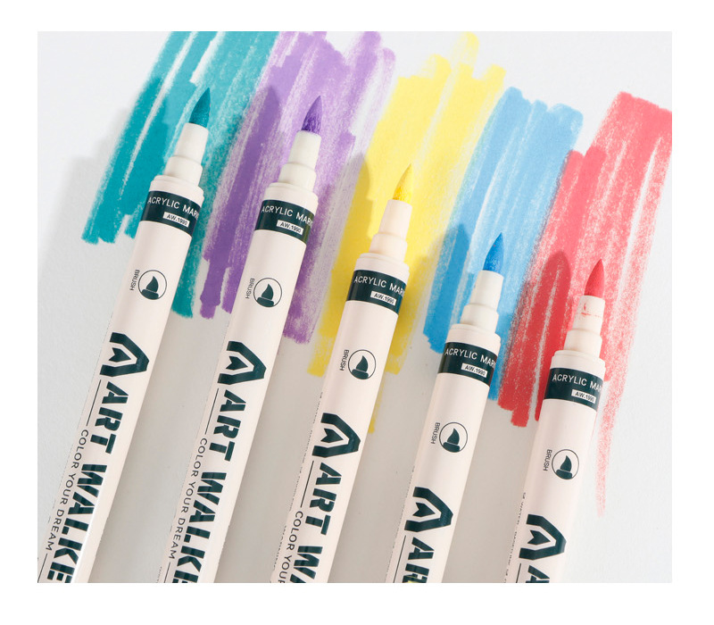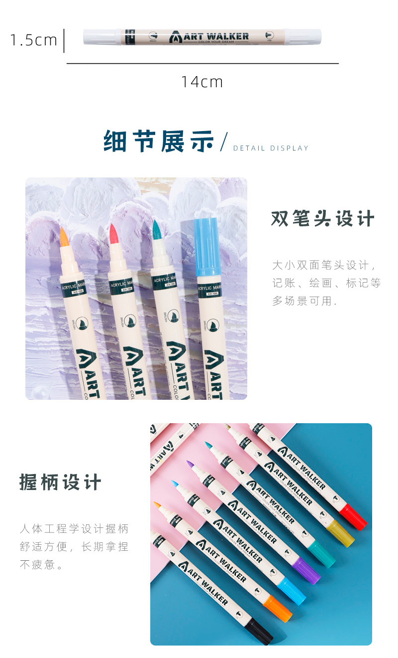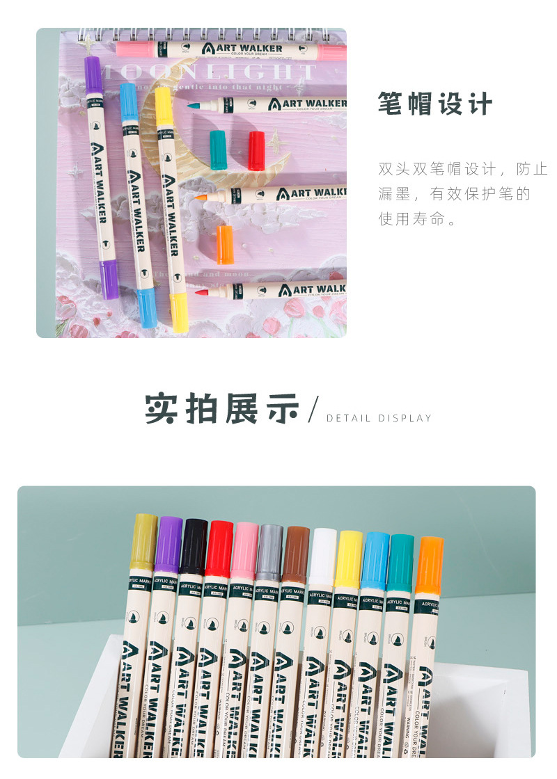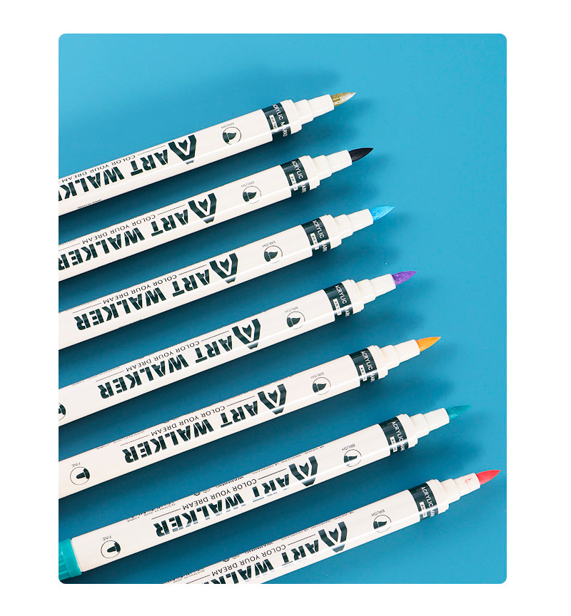 Un marcador de acrílico de doble cabeza solo autoeleccionado para estudiantes de arte con doble cabeza blando y duro resaltado blanco pluma graffiti