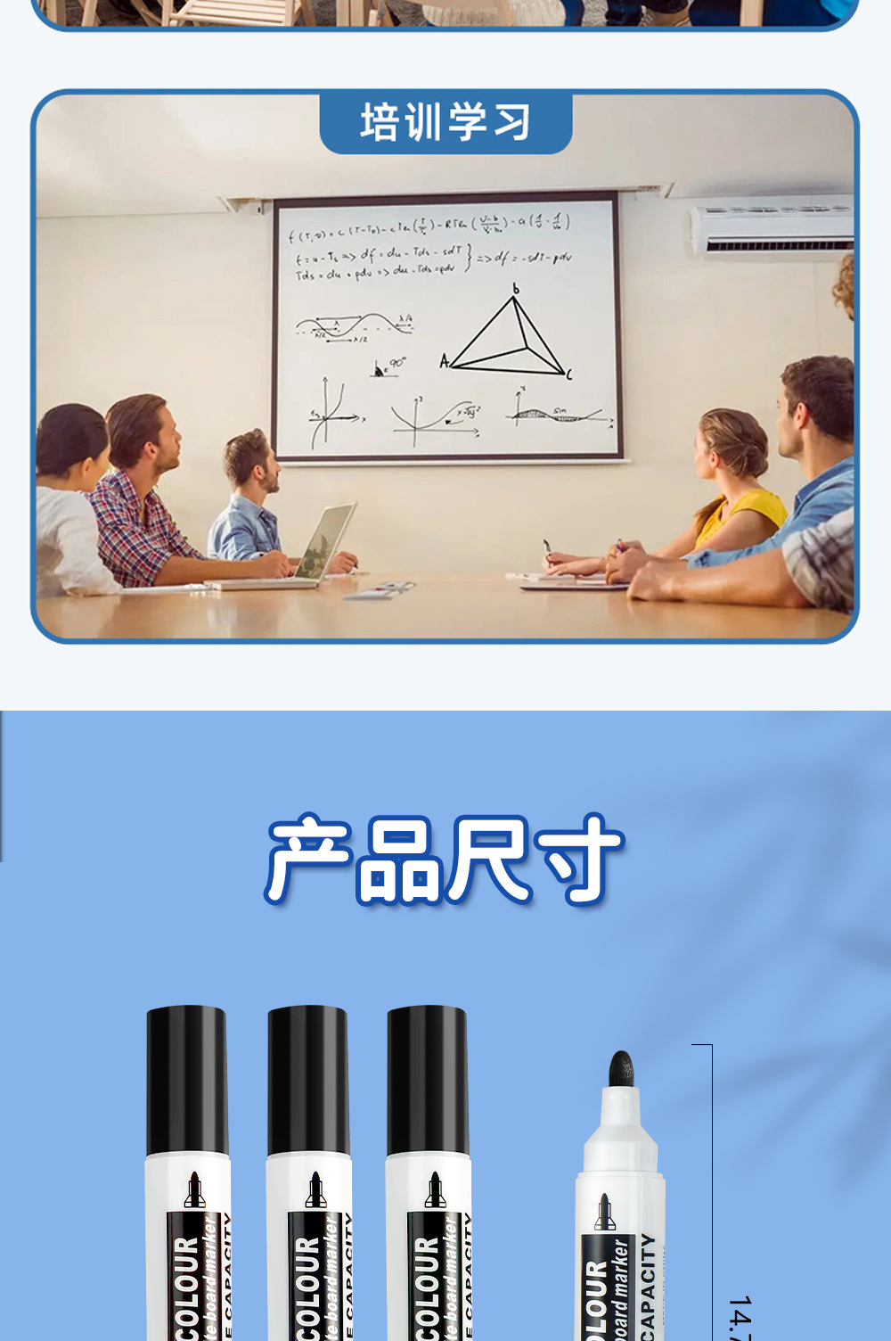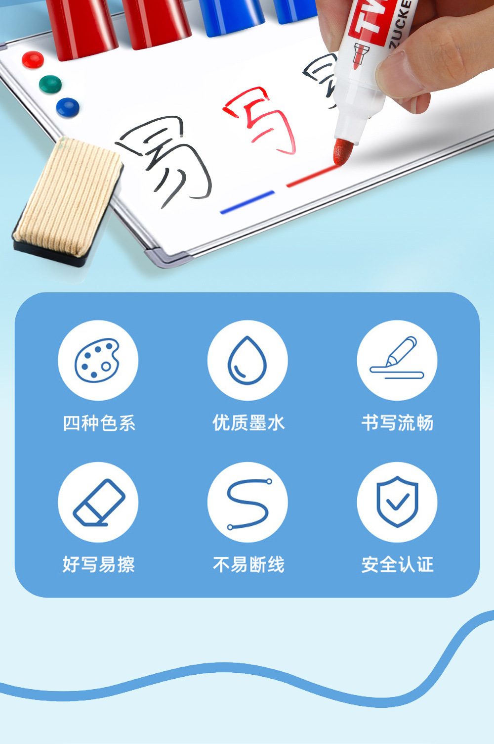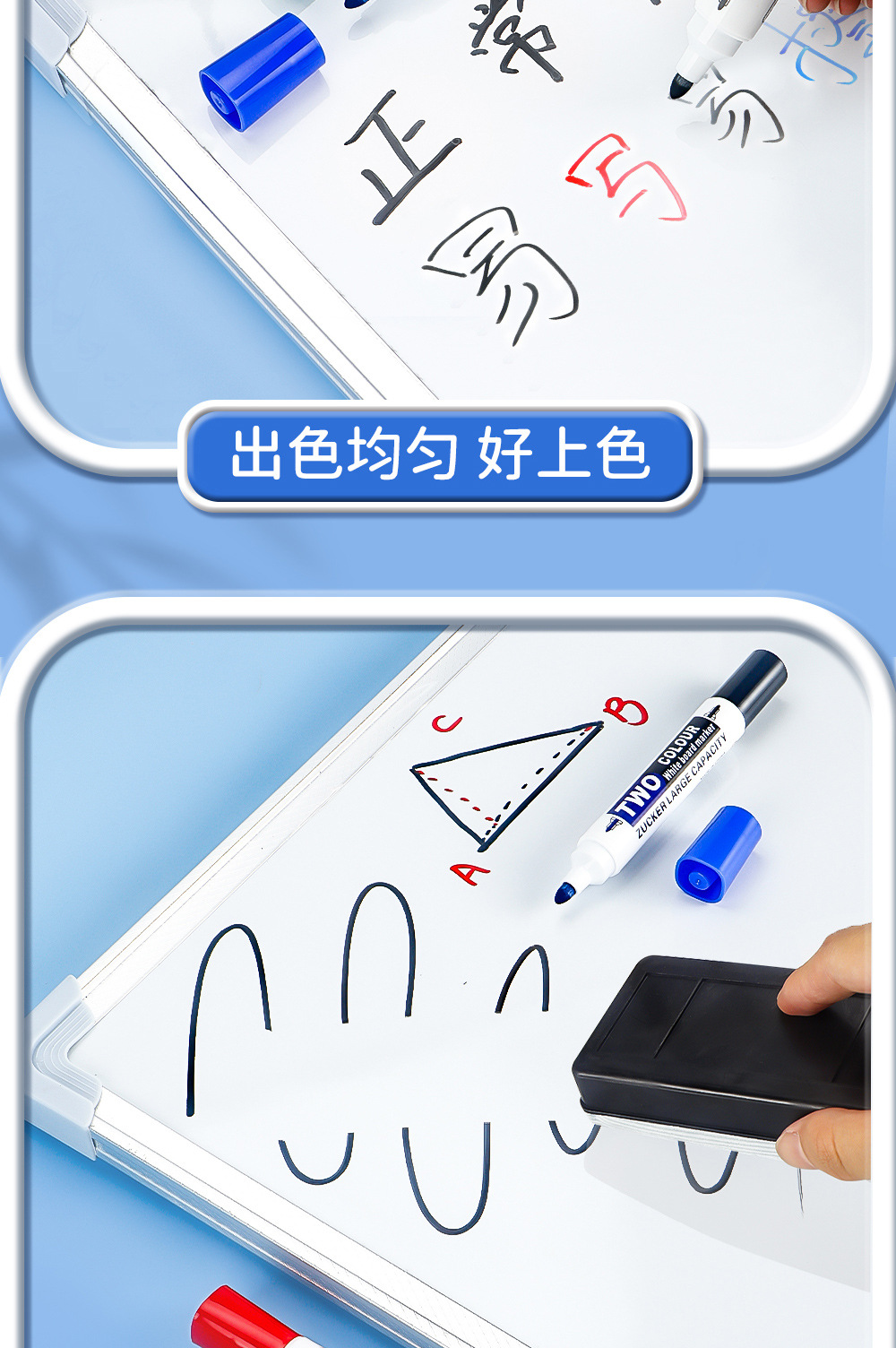 Transfronterizos de dos cabezas de dos colores bolígrafo de pizarra de enseñanza de escritura suave cinta de tinta continua pizarra limpieza al por mayor spot