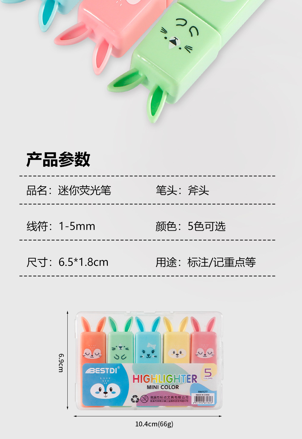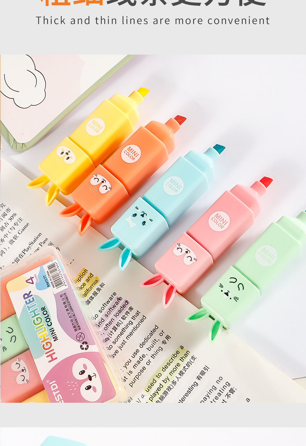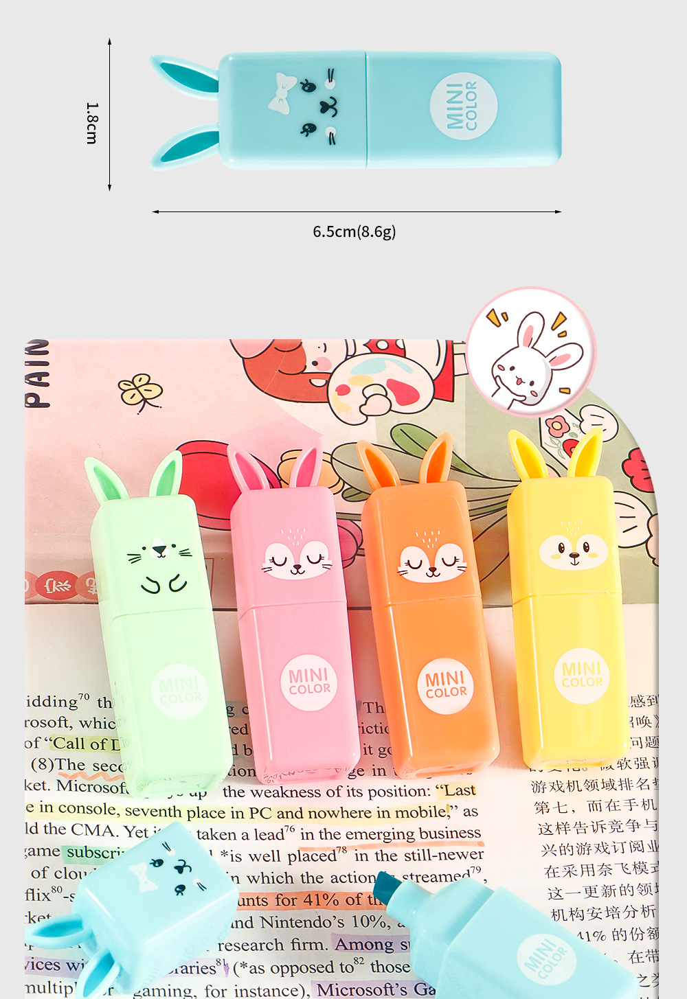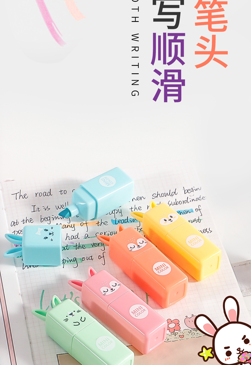 Mini conejo creativo puntero de resaltador de estudiantes cuentas de mano DIY marcador de color macaron puntero de resaltador