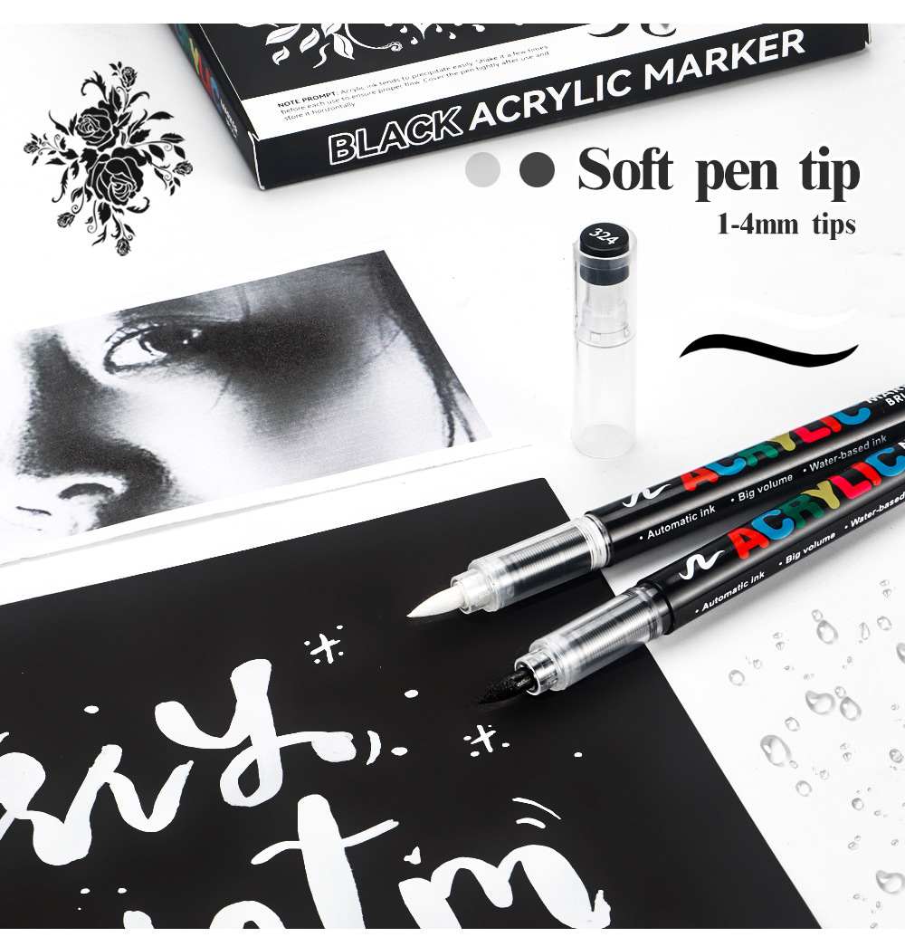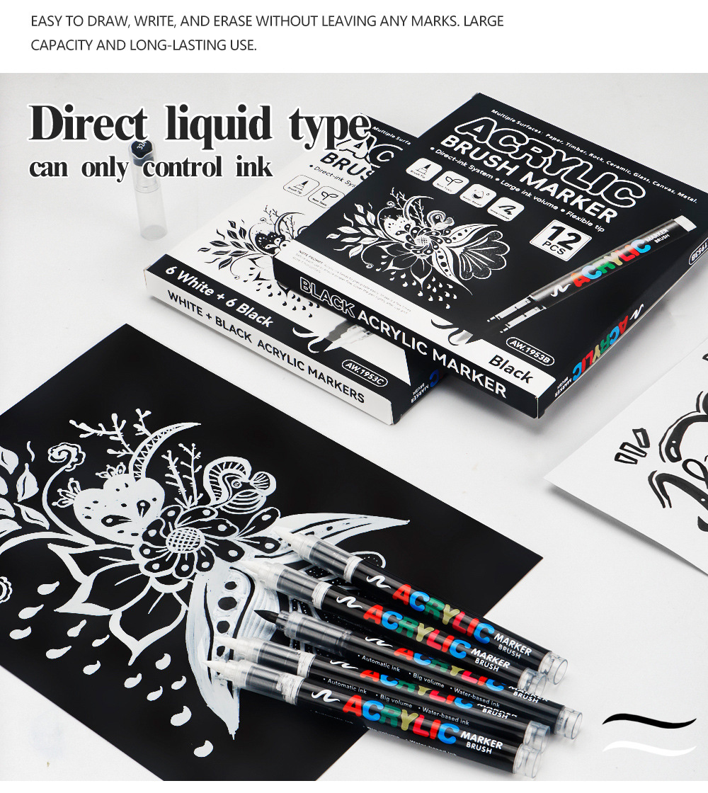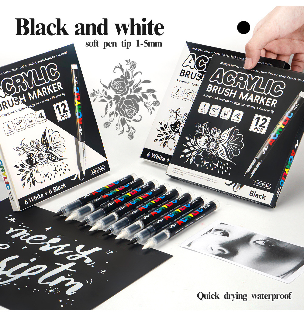 Blanco y negro acrílico líquido directo lápiz de marcado de alta calidad DIY tarjeta negra lápiz de contabilidad de mano lápiz de marcado de pintura suave