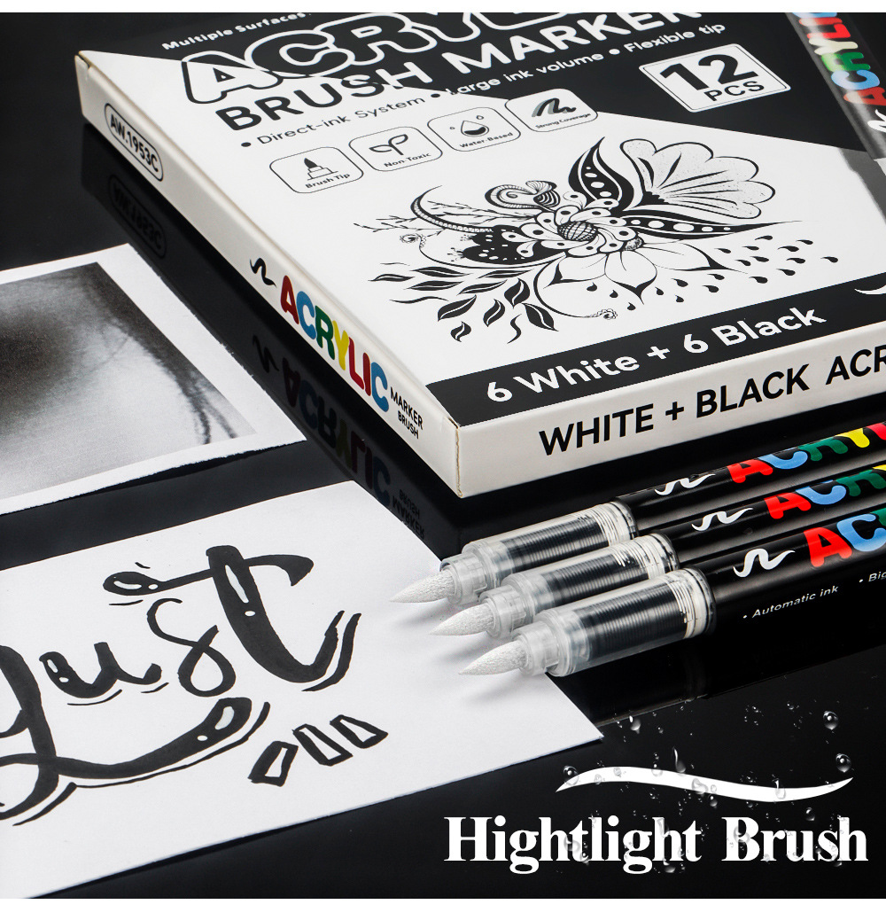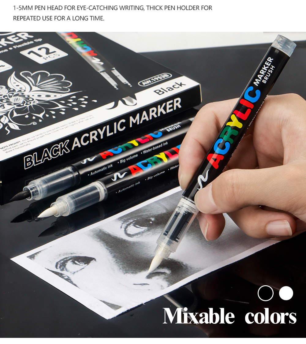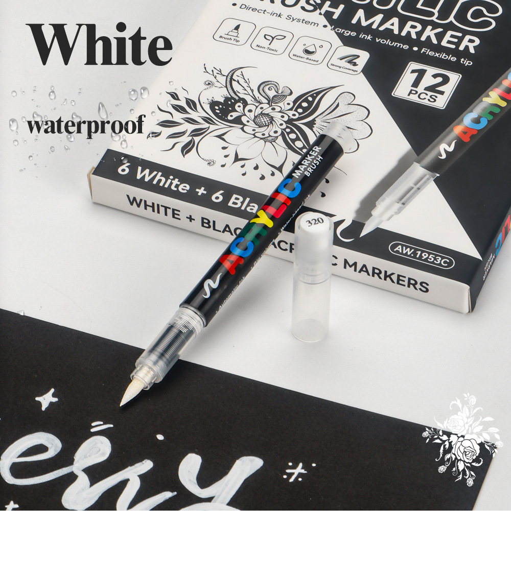 Blanco y negro acrílico líquido directo lápiz de marcado de alta calidad DIY tarjeta negra lápiz de contabilidad de mano lápiz de marcado de pintura suave