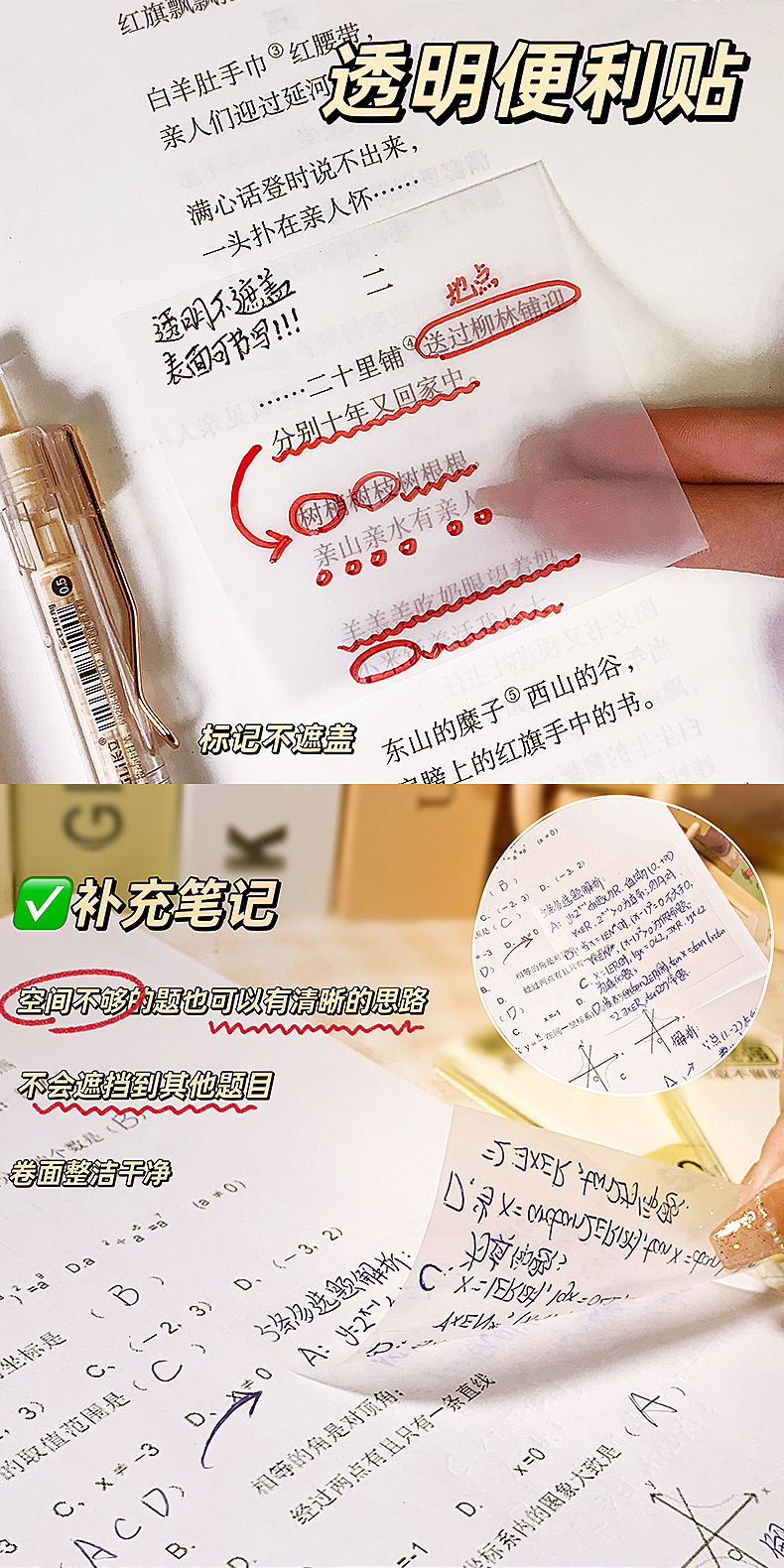 Nuevo PET transparente nota adhesiva rasgable nota adhesiva estudiante nota de la mano Nota de papel ins estilo impermeable nota adhesiva