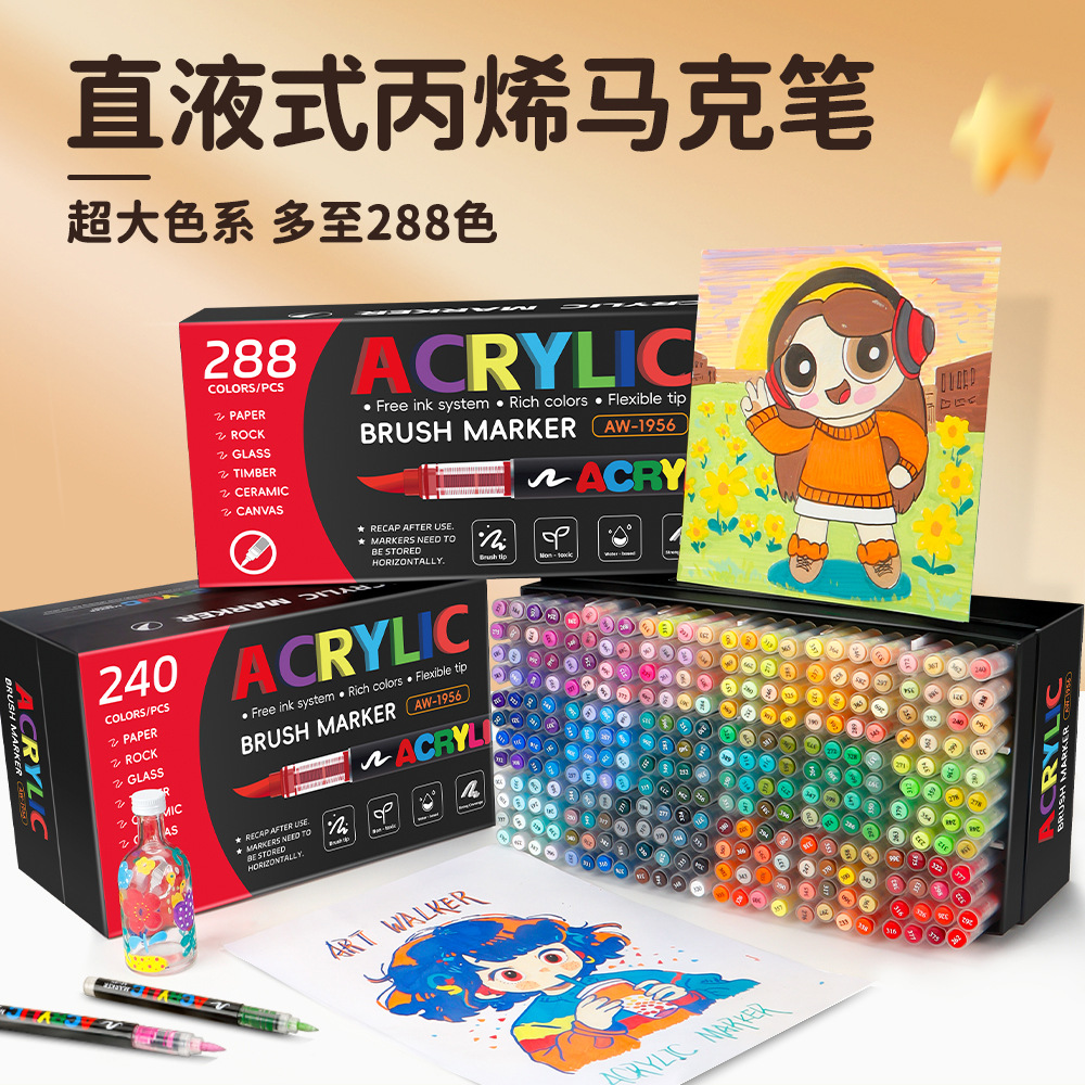 Lápiz de acrílico líquido recto blando único color suplementario pintado de arte infantil graffiti plegable color acuarela lápiz de marca