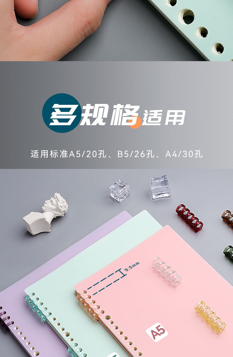 Kedetú 5-agujero anillo de la hoja suelta-Anillo de unión de cinco agujeros de plástico de hoja suelta-clip de la tira de la hoja