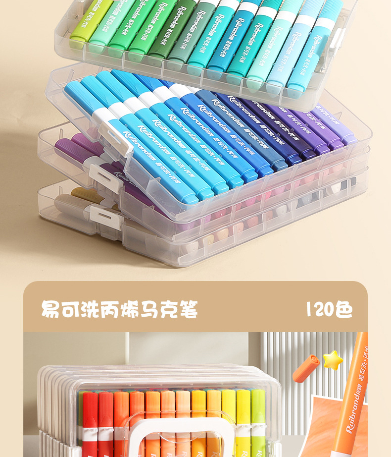 120 colores fáciles de lavar acrílico marcador pluma set niños lavable no tóxico acuarela pluma pincel de color triangular