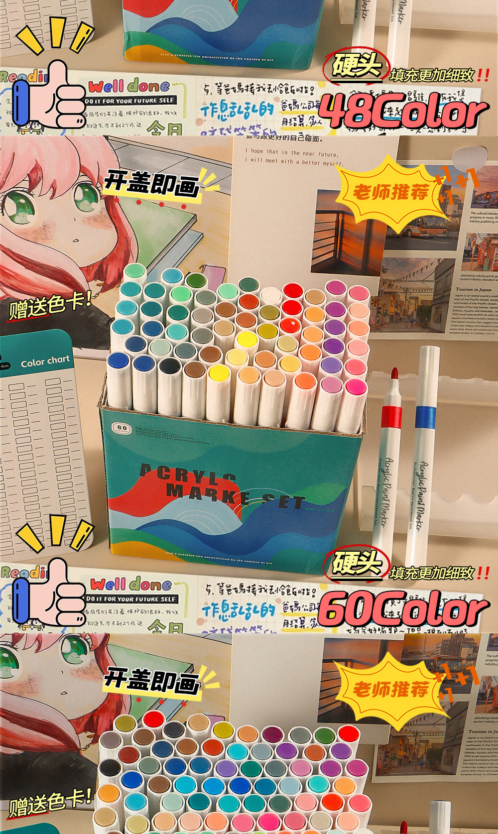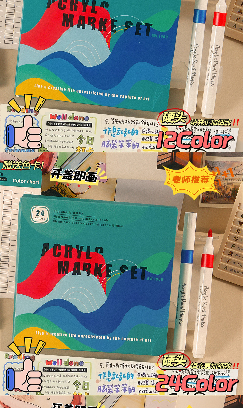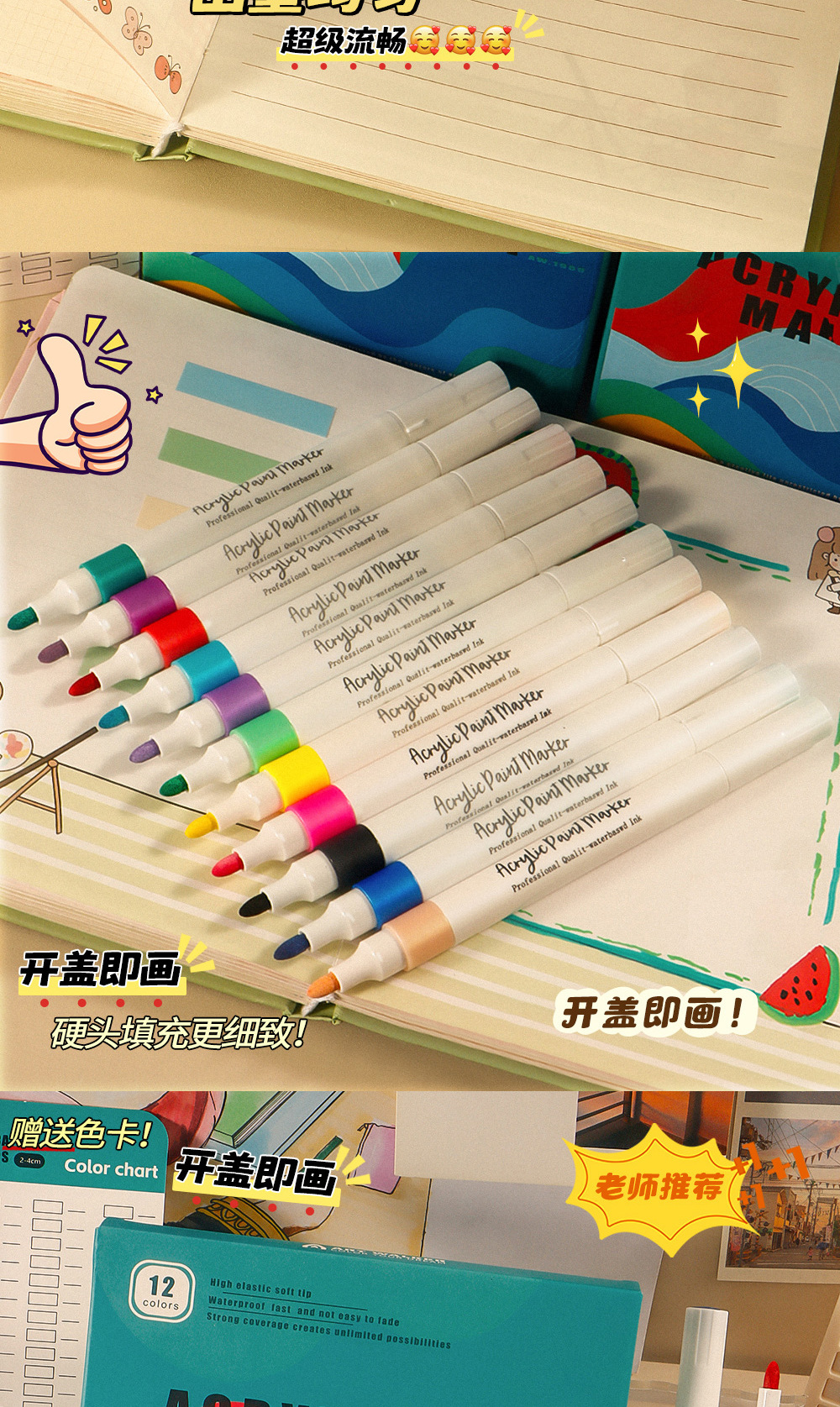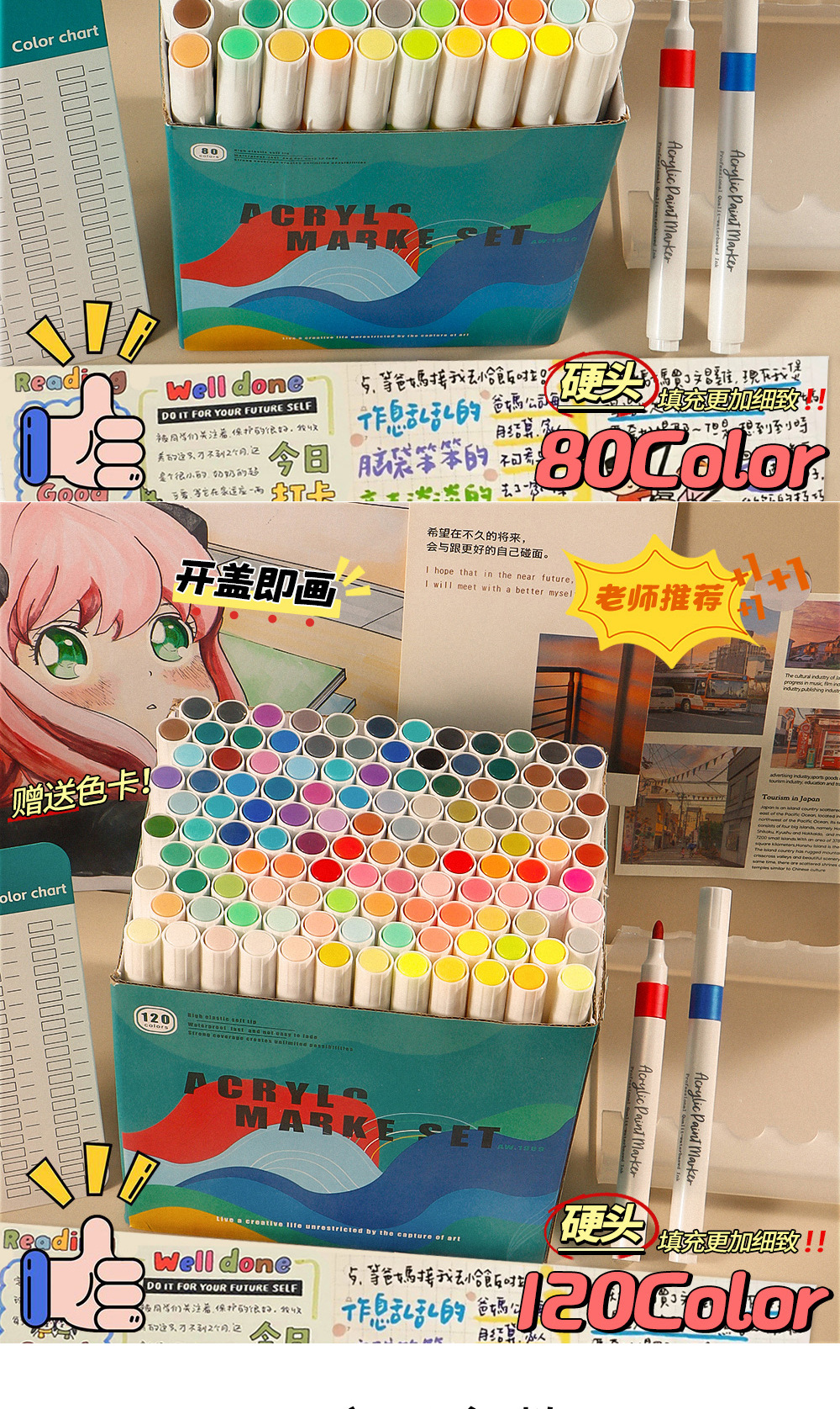Marcador de acrílico 80 color conjunto de cabeza dura de alta capacidad caja de regalo de pintura de color de agua no se desvanece no se desvanece