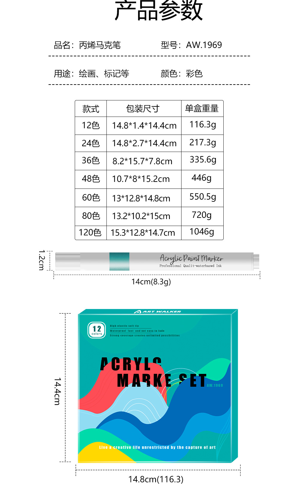 | Especificaciones | Traje de 12 colores, traje de 24 colores, traje de 36 colores, traje de 48 colores, traje de 60 colores, traje de 80 colores, traje de 120 colores |