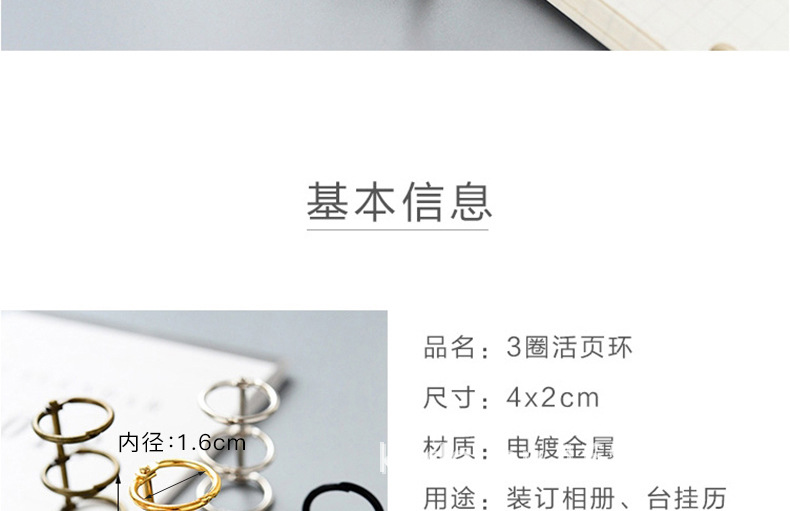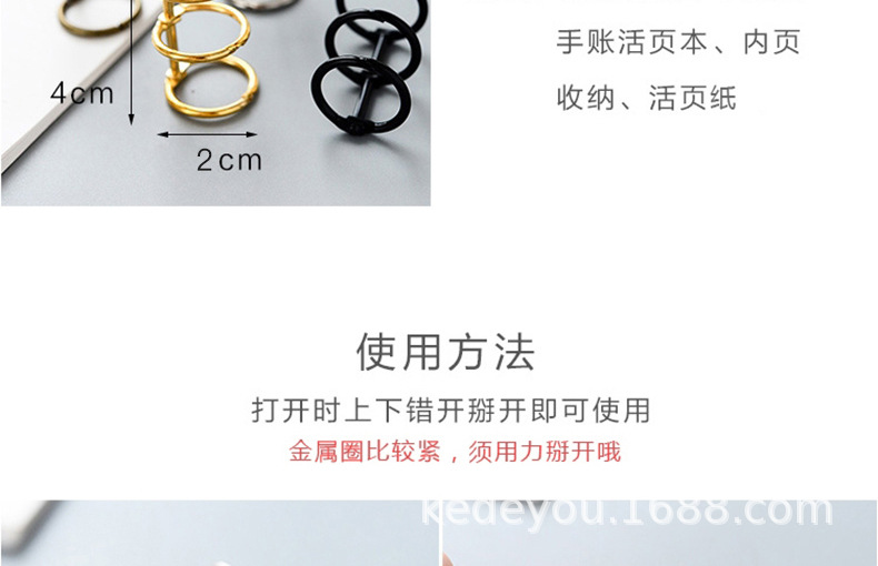 Kedeu (KW-triO) Anillo de encuadernación de metal de 3 agujeros Clip de encuadernación de hojas sueltas Anillo de encuadernación de papel Anillo de tres agujeros de hojas sueltas