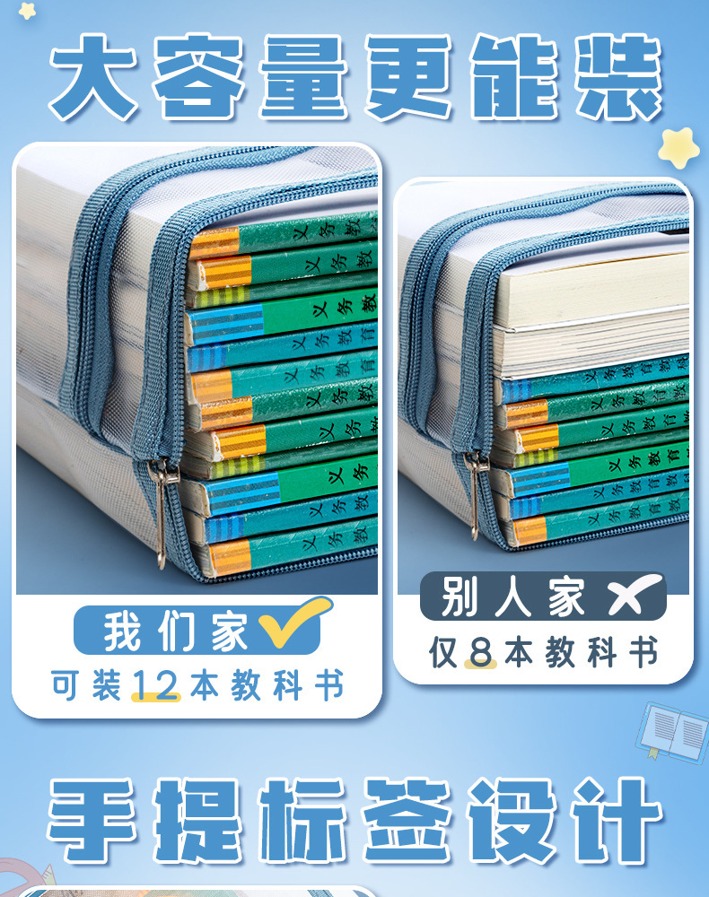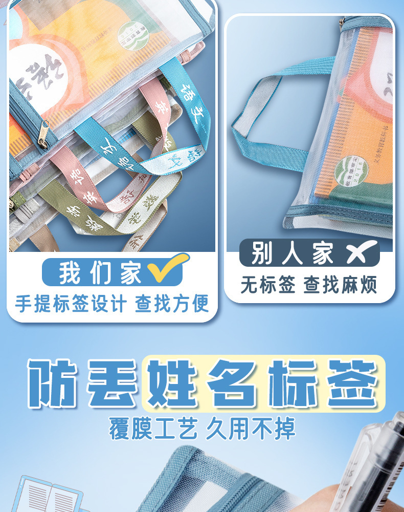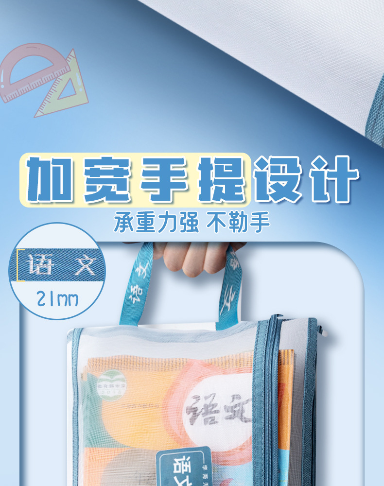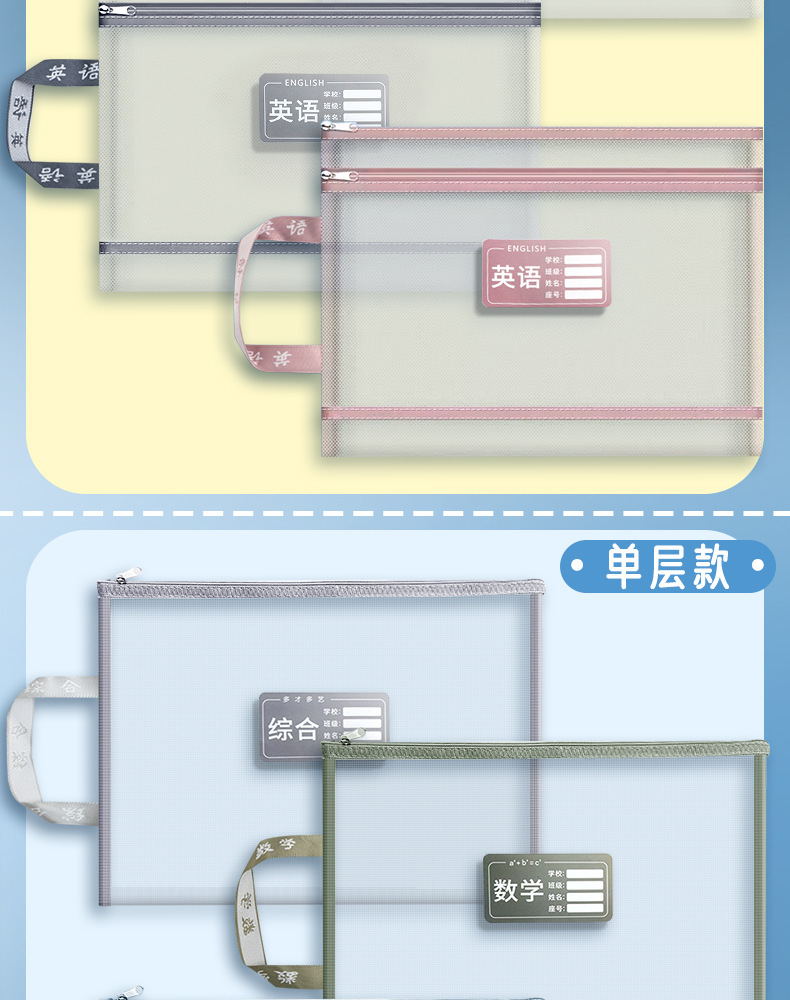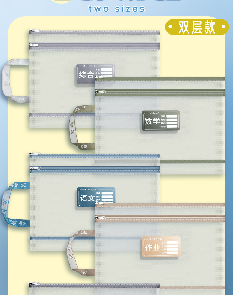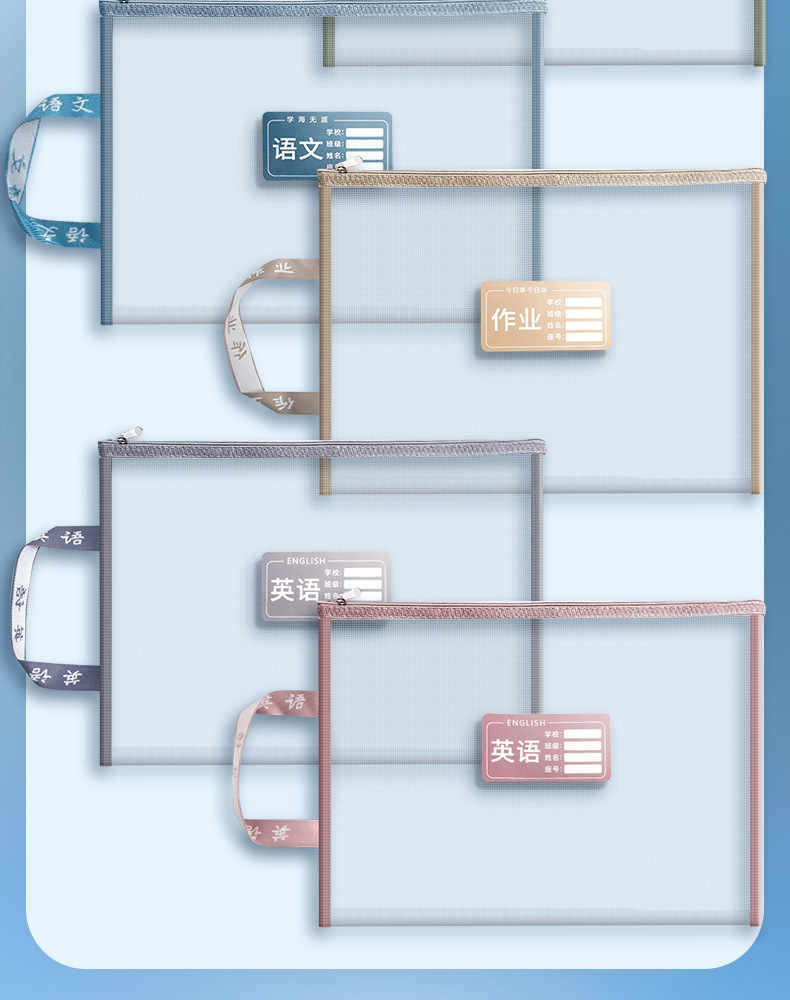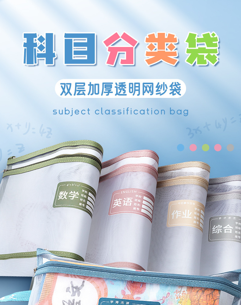 Bolsa de asignatura bolsa de clasificación doble cremallera bolsa de tareas de estudiantes de gran capacidad bolsa de datos de malla transparente A4